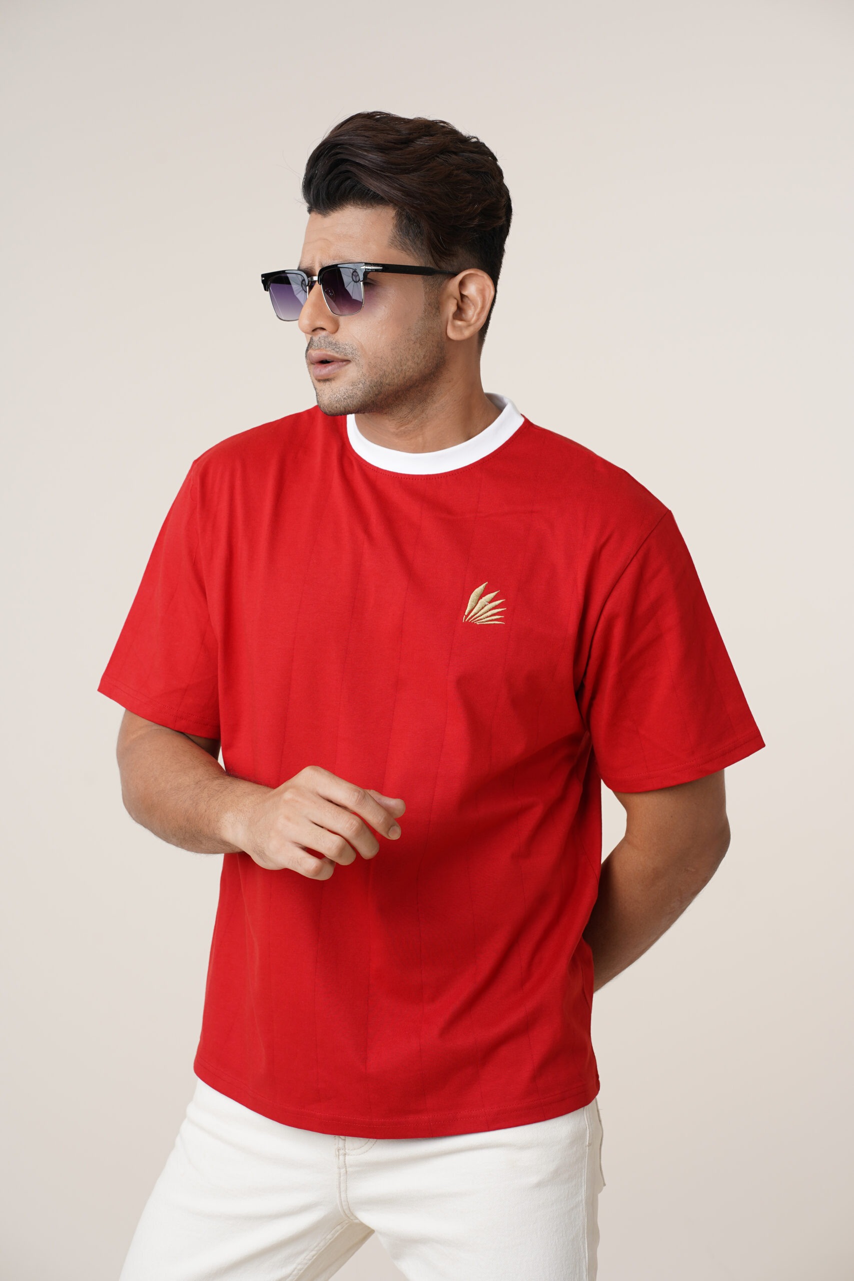 AMRISS Signature Collection Men’s Premium Red Drop Needle T-Shirt Soft Textured Casual Drop Shoulder Tee
