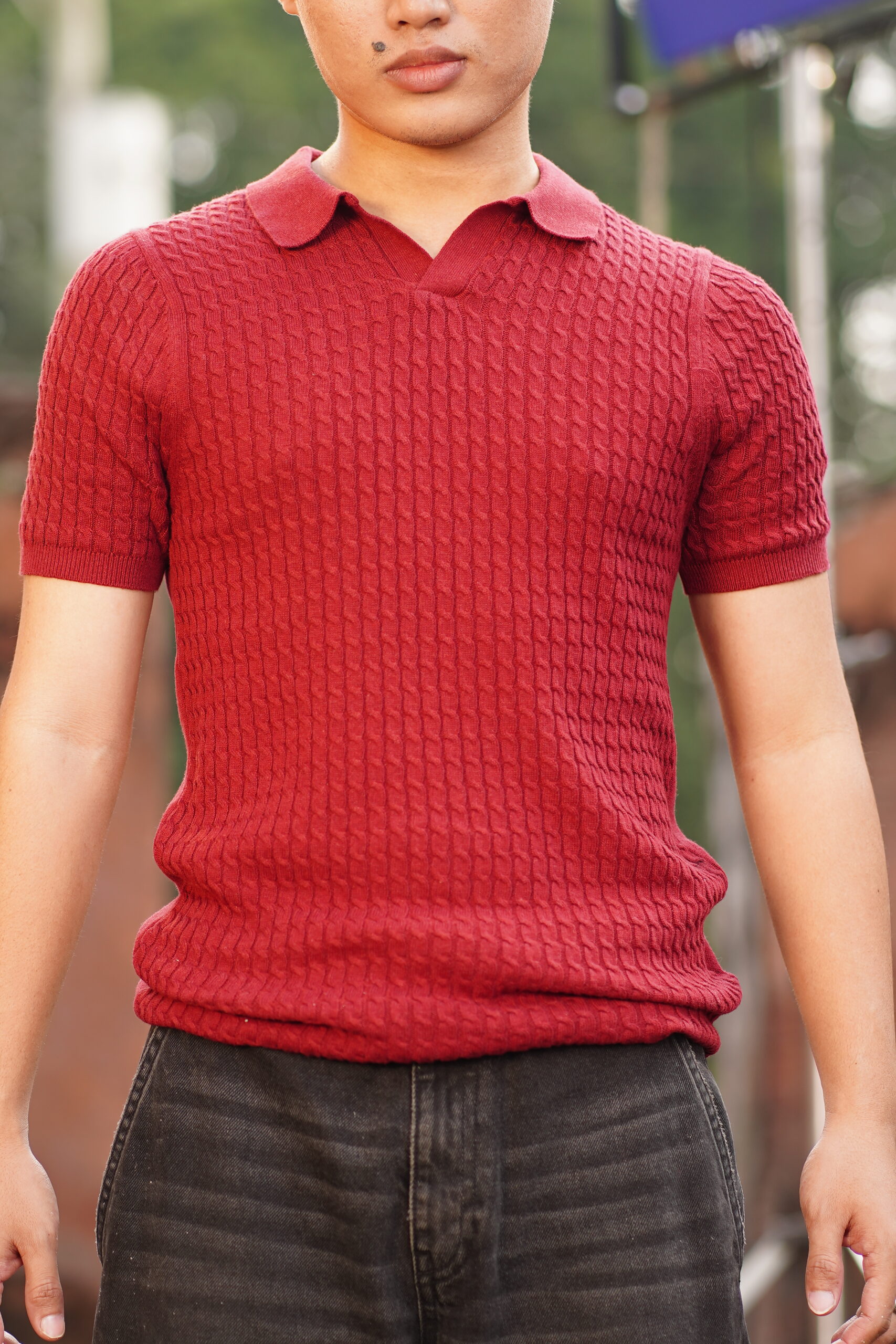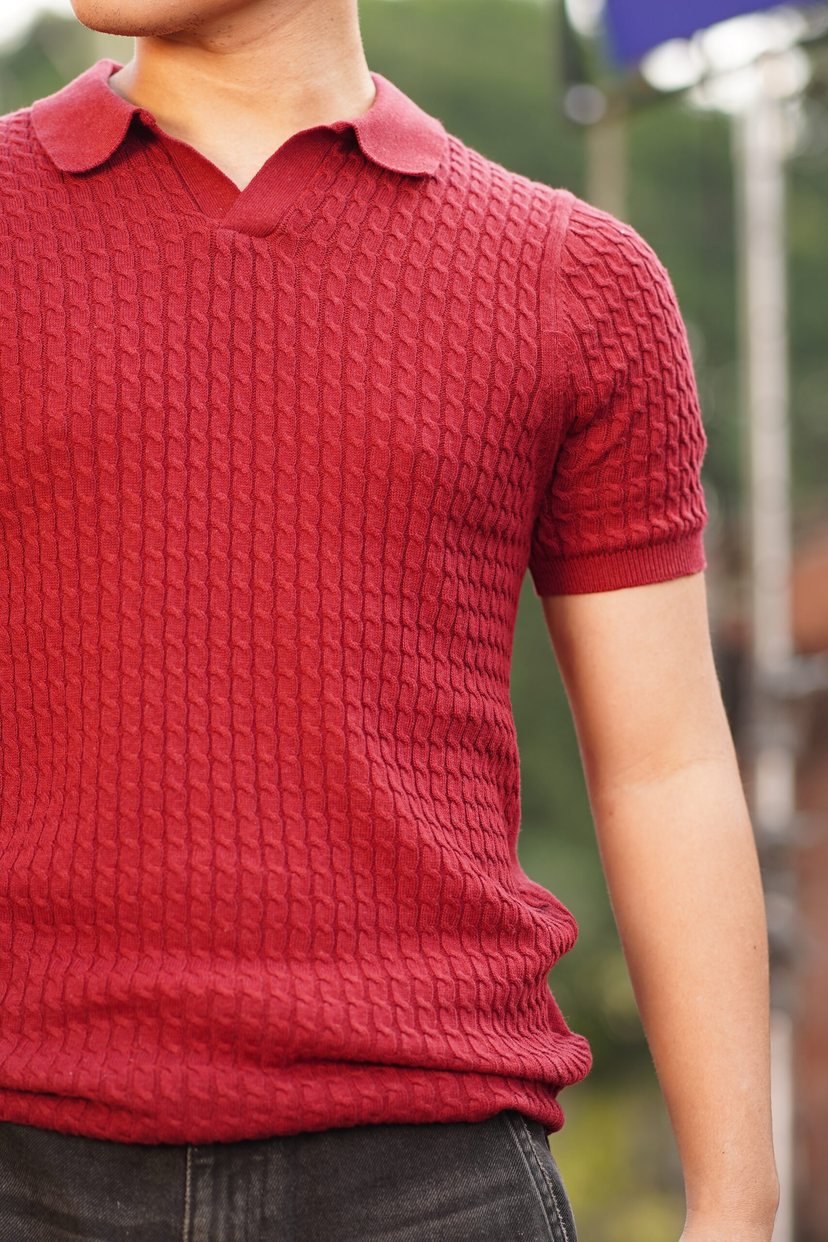 Cable Knit Heavyweight Casual Wear Amriss Polo for Men