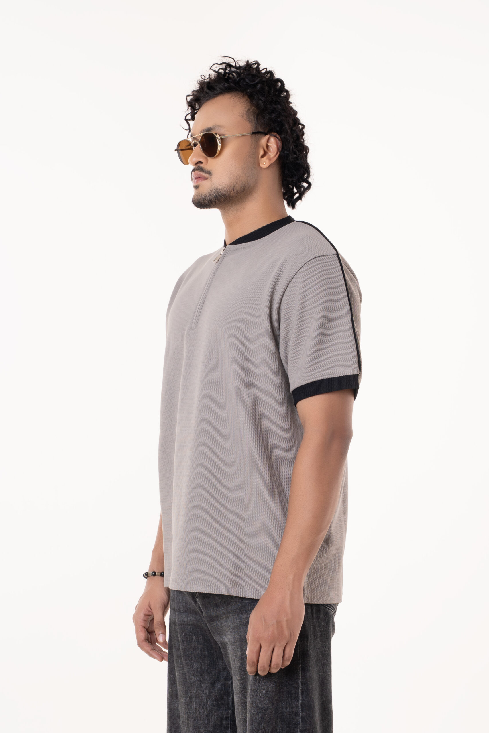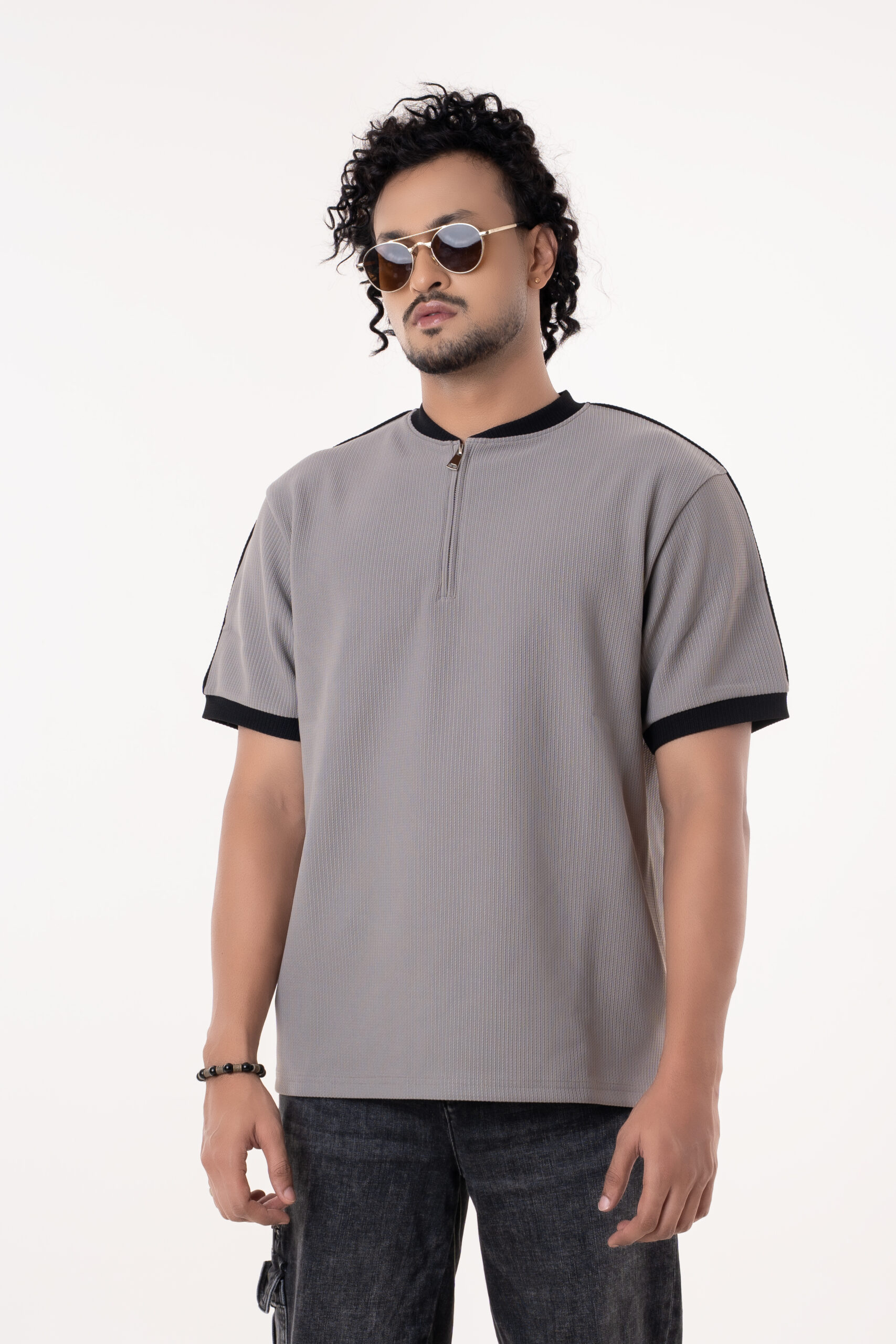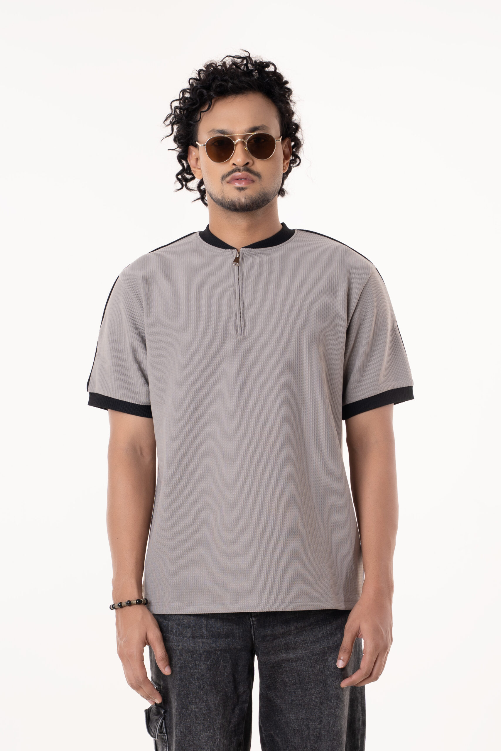 Be the first to review “Ash Gray Half Zip Neckline Short Sleeve Slightly Stretchable Men’s Urban Wear T-Shirt”