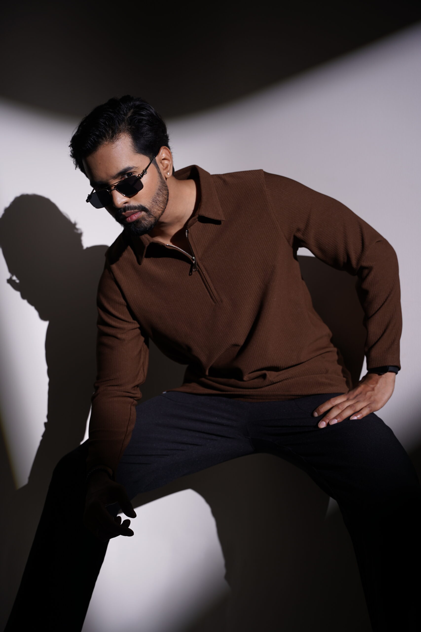 New Arrival Premium Amriss Blend Fabric Men’s Long Sleeve Half Zip Neckline Collar Stylish Polo