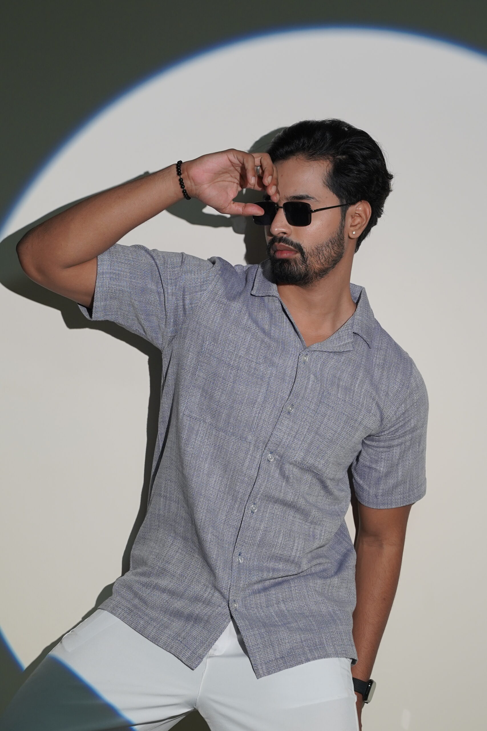 Grey Textured Men’s Short Sleeve Shirt Vacation Wear