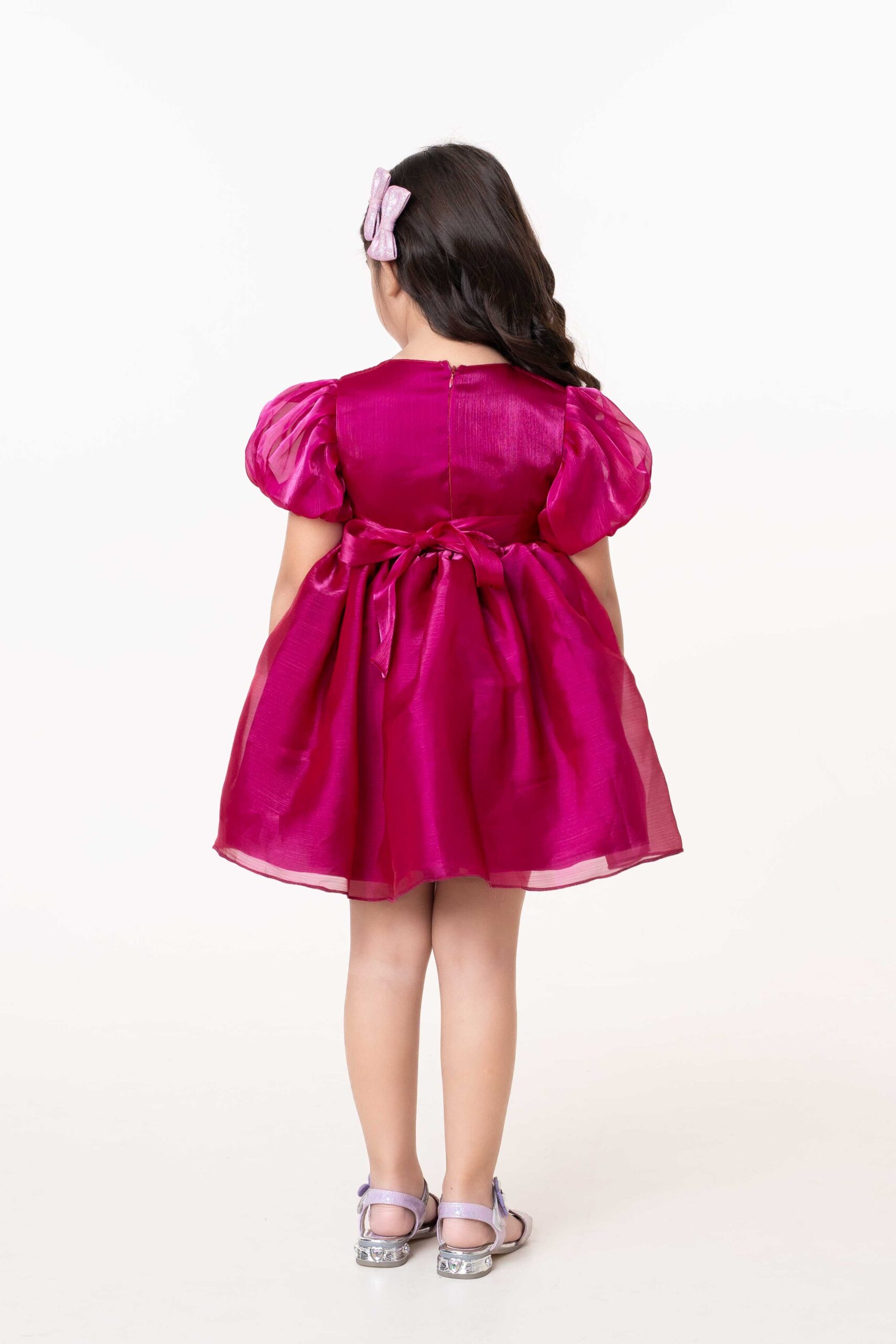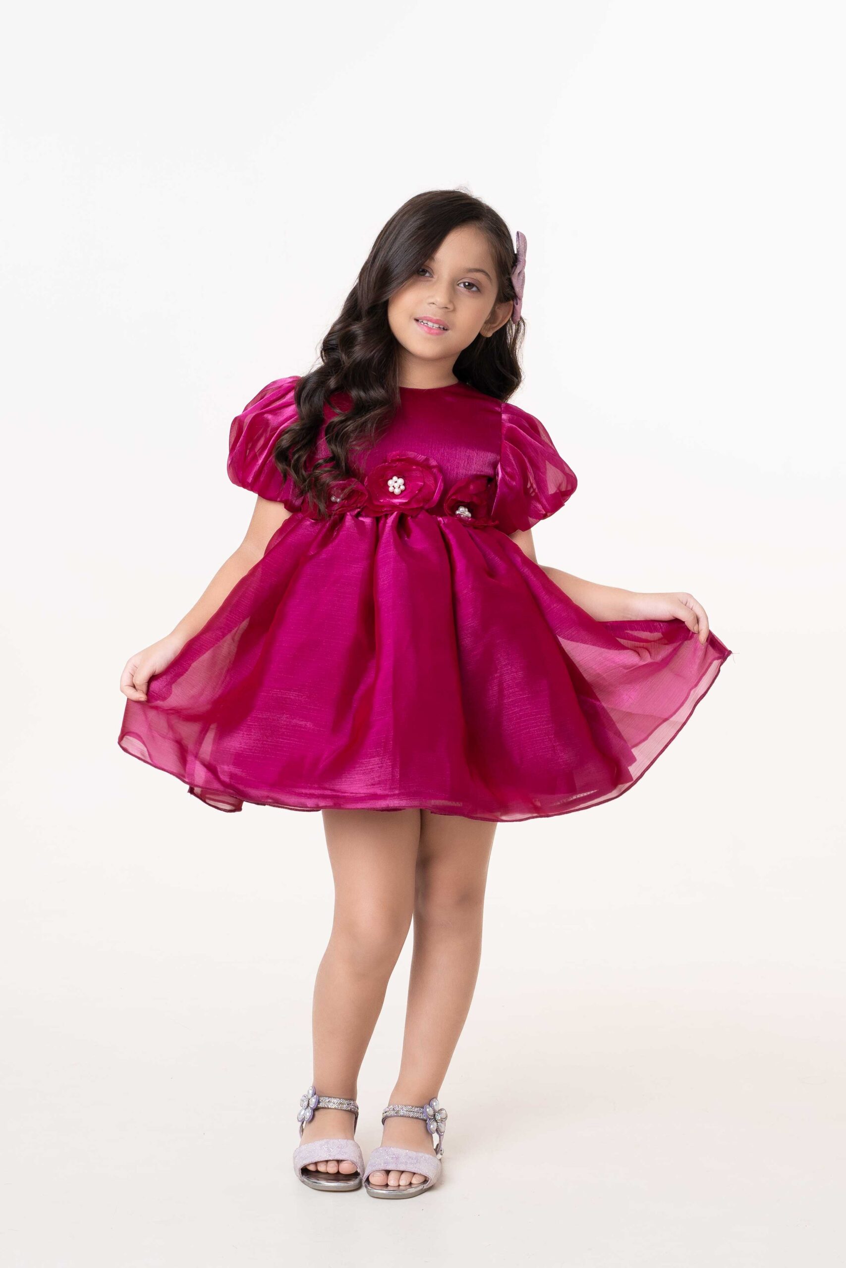 Amriss Girls Premium Organza Party Frock Magenta Fancy Little Girl Dress Kids Birthday Dress