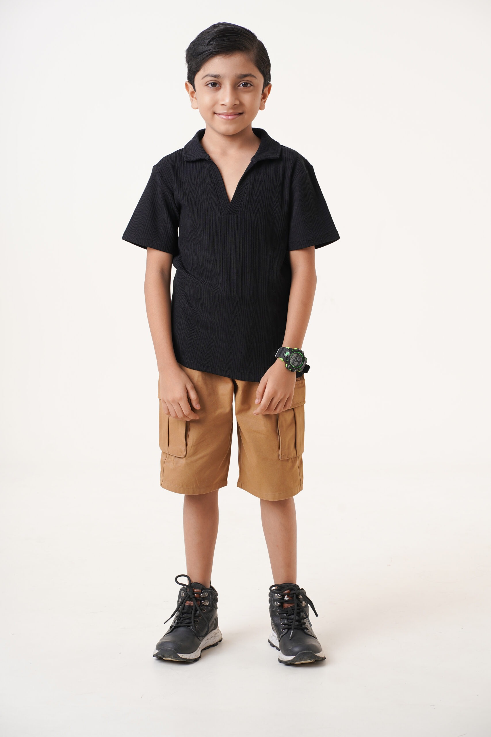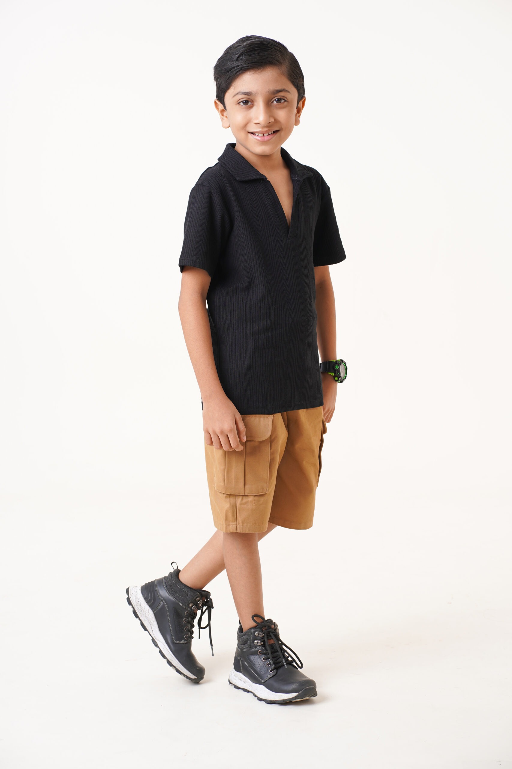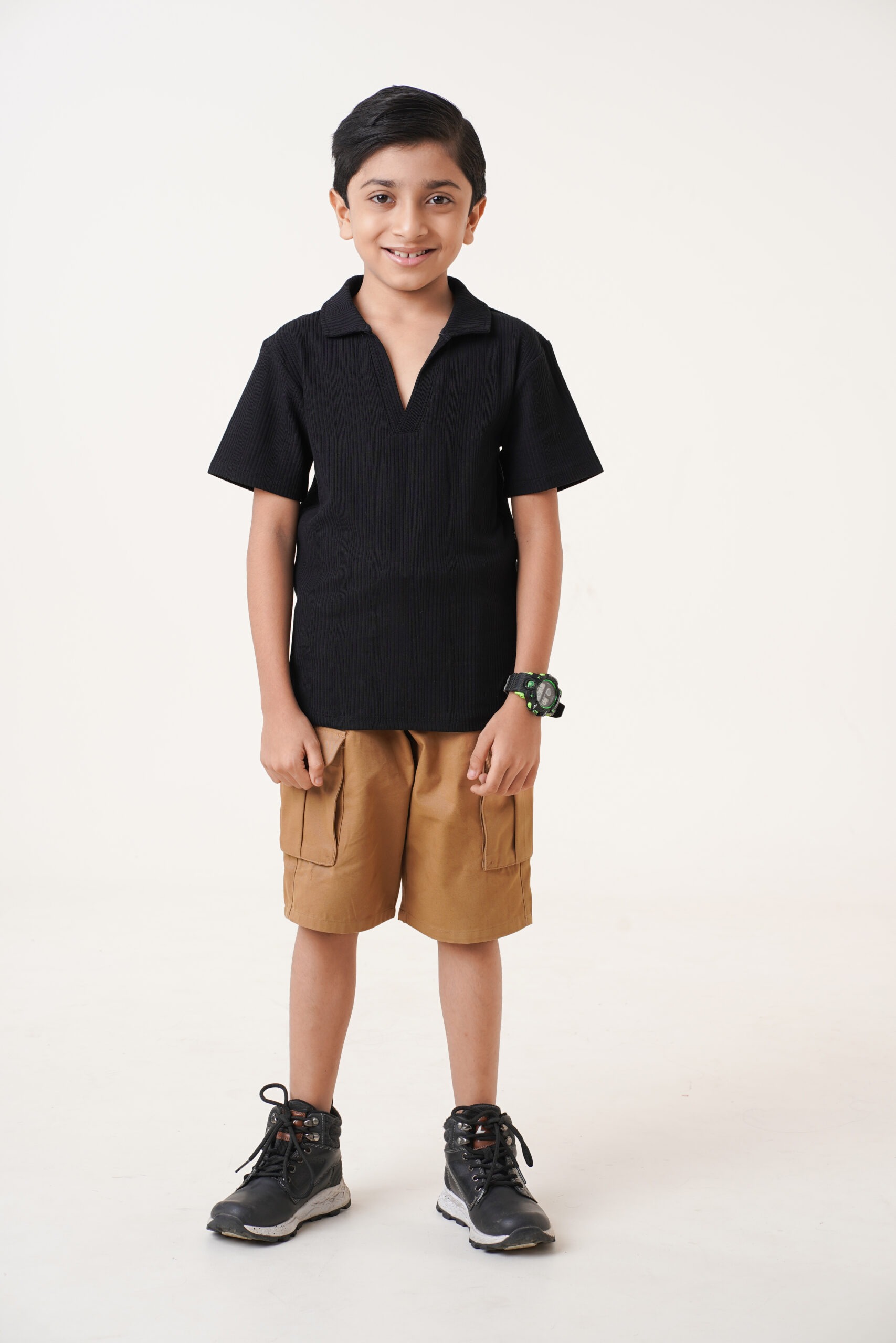 AMRISS Kids Stylish Half Sleeve Summer Top Boys Black Textured Casual Shirt