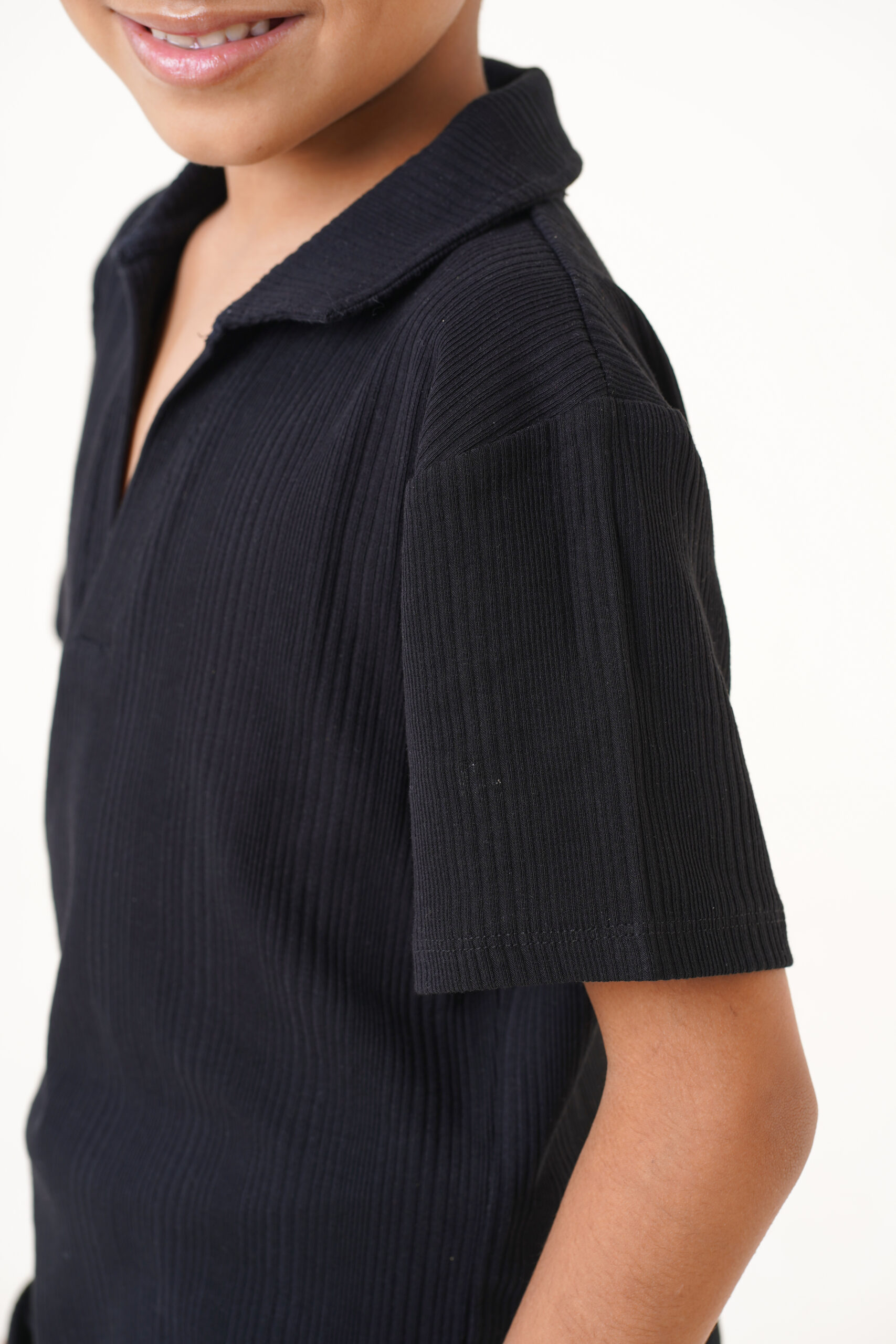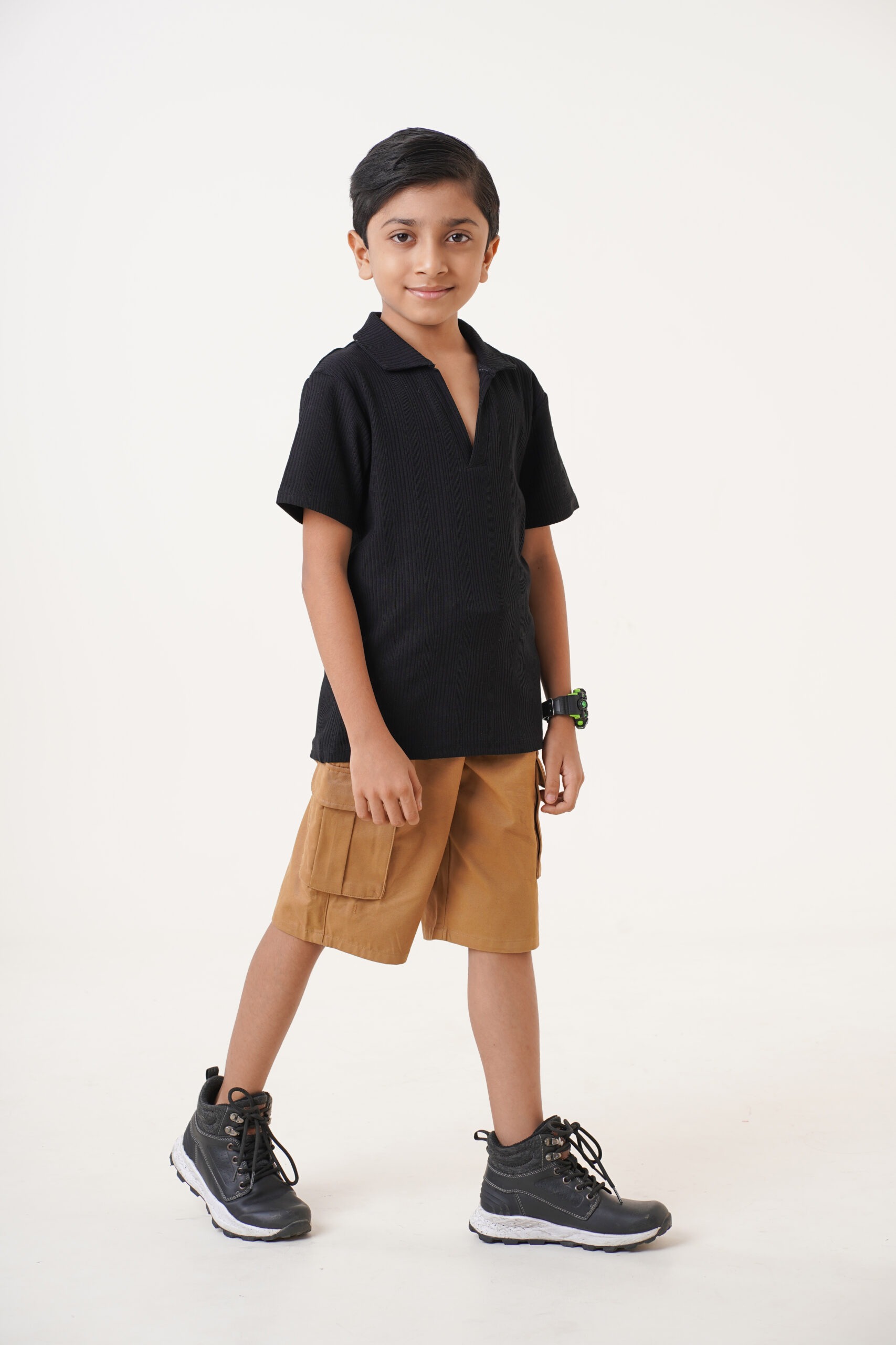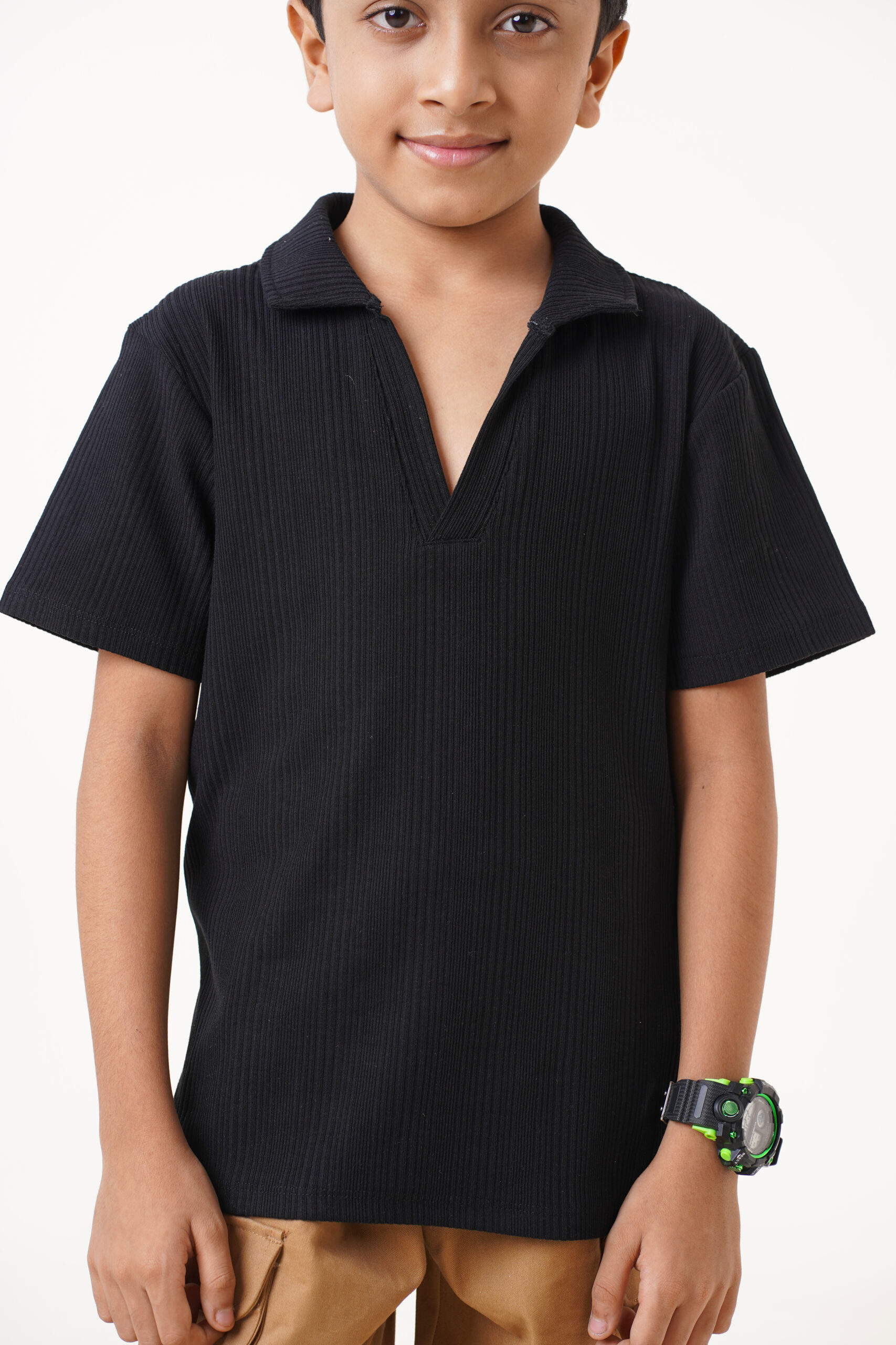 AMRISS Kids Stylish Half Sleeve Summer Top Boys Black Textured Casual Shirt
