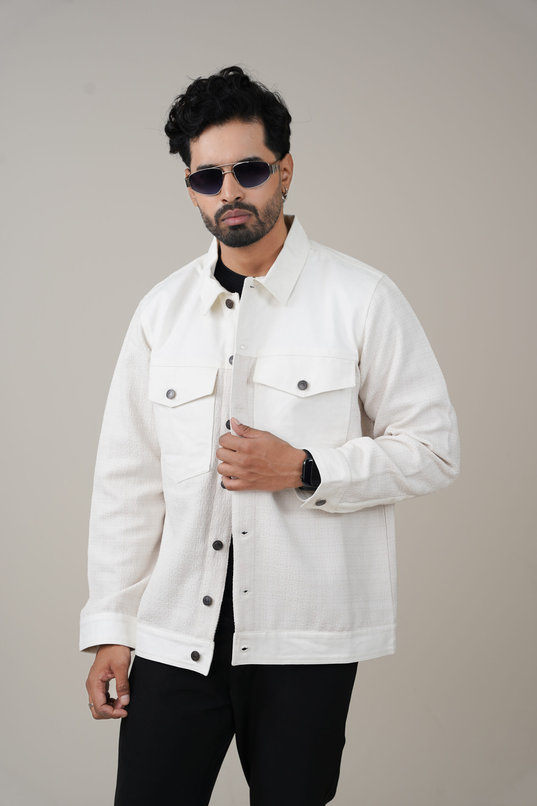 Step into effortless style with the Amriss Premium Men’s Textured Panel Jacket. Designed for men who prefer clean structure and modern detailing, this jacket blends soft textured fabric with crisp contrast panels that create a bold and elevated look. The multi-button front makes it easy to layer over tees and winter basics, while the structured flap pockets add both function and style.