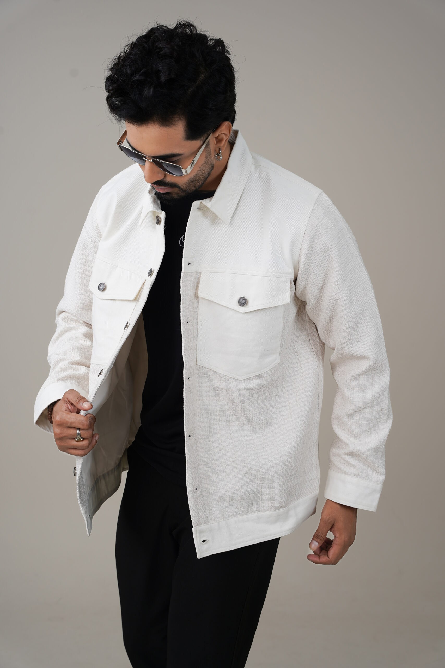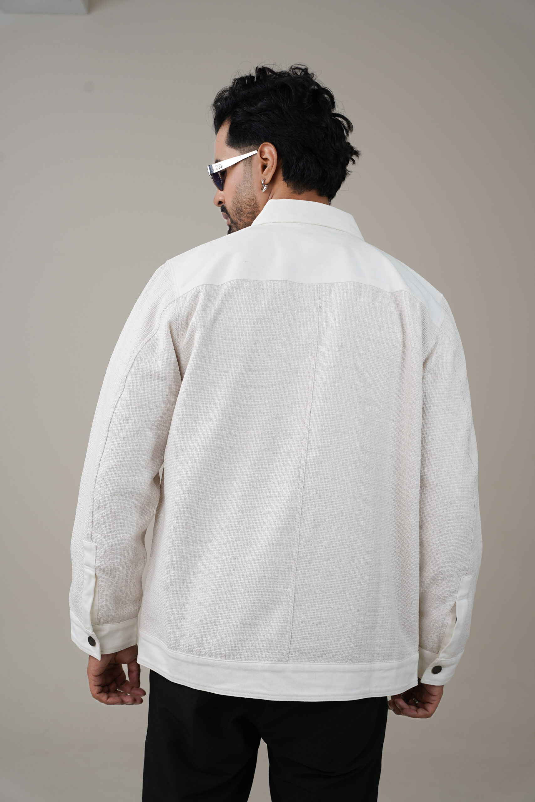 Stylish Cotton Blend Outerwear Amriss Premium Textured White Casual Winter Wear Tweed Jacket for Men