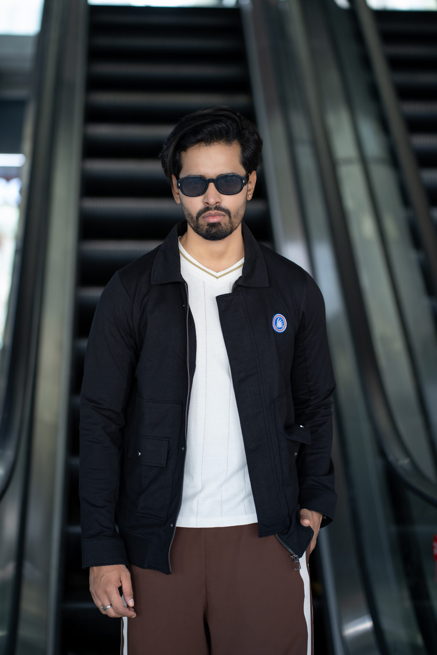 Amriss Winter Outfit Men’s Black Lightweight Casual Zip Up Jacket with Multi Pocket Design
