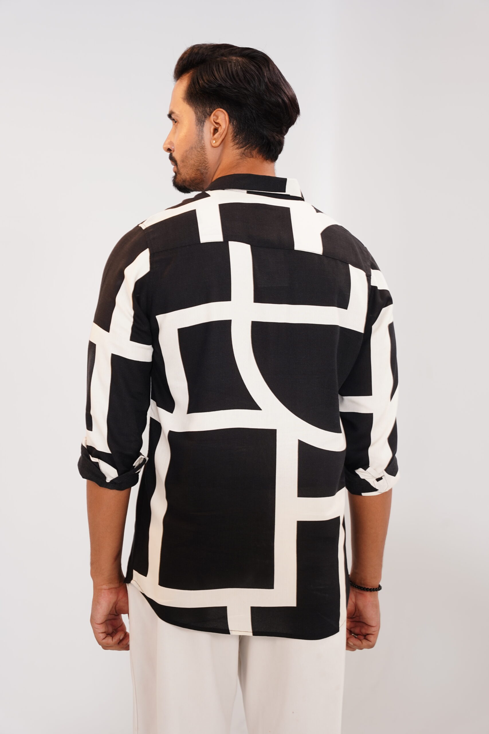 Black & Ivory Geometric Pattern Men’s Casual Wear Viscos Shirt