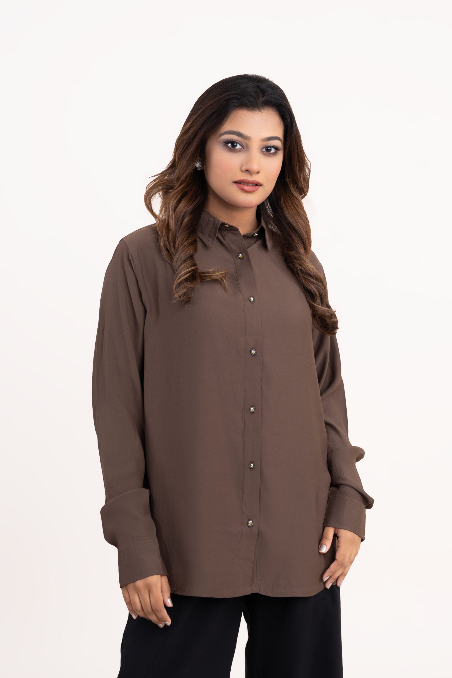 This woman’s formal shirt top is thoughtfully designed to deliver elegance, comfort and versatility for the modern wardrobe. Crafted with a smooth soft-touch fabric, this top offers a refined look that transitions effortlessly from office hours to casual outings and formal occasions. The clean button-down front and structured collar create a polished silhouette while the relaxed fit ensures ease of movement throughout the day.