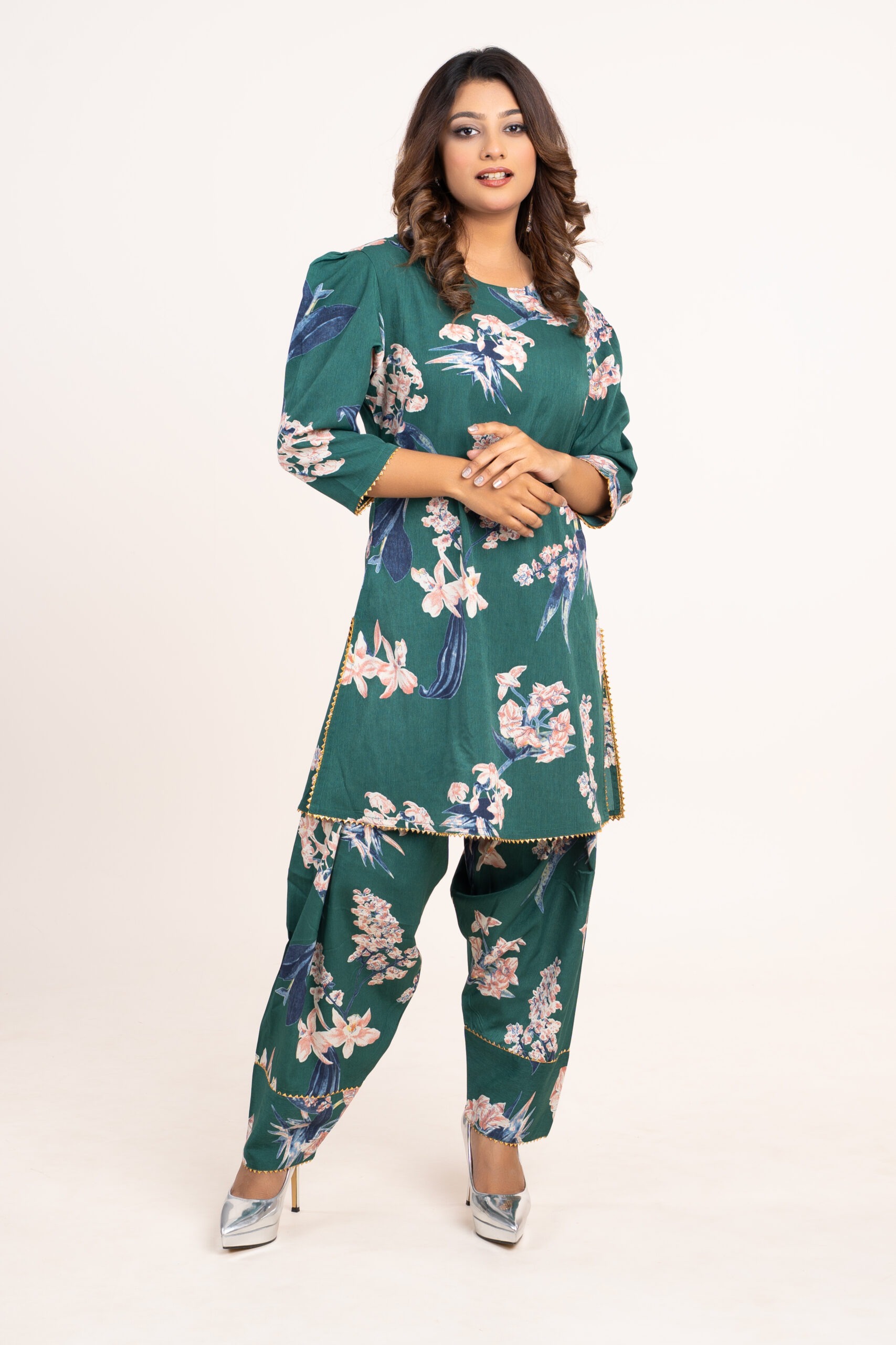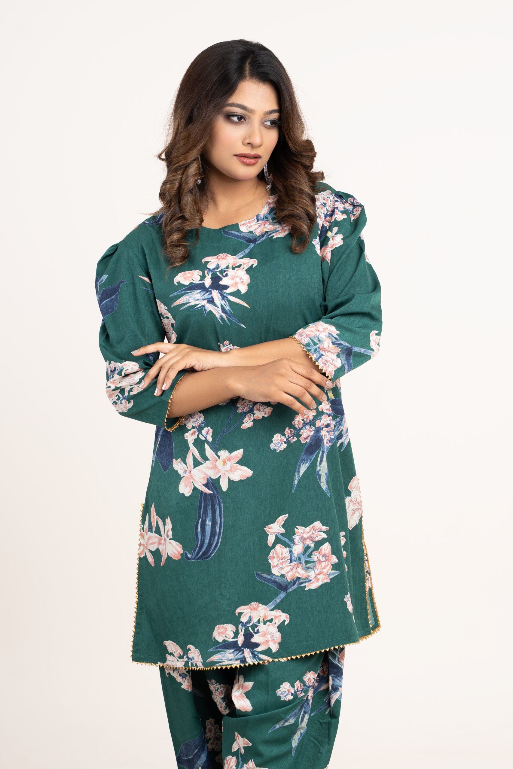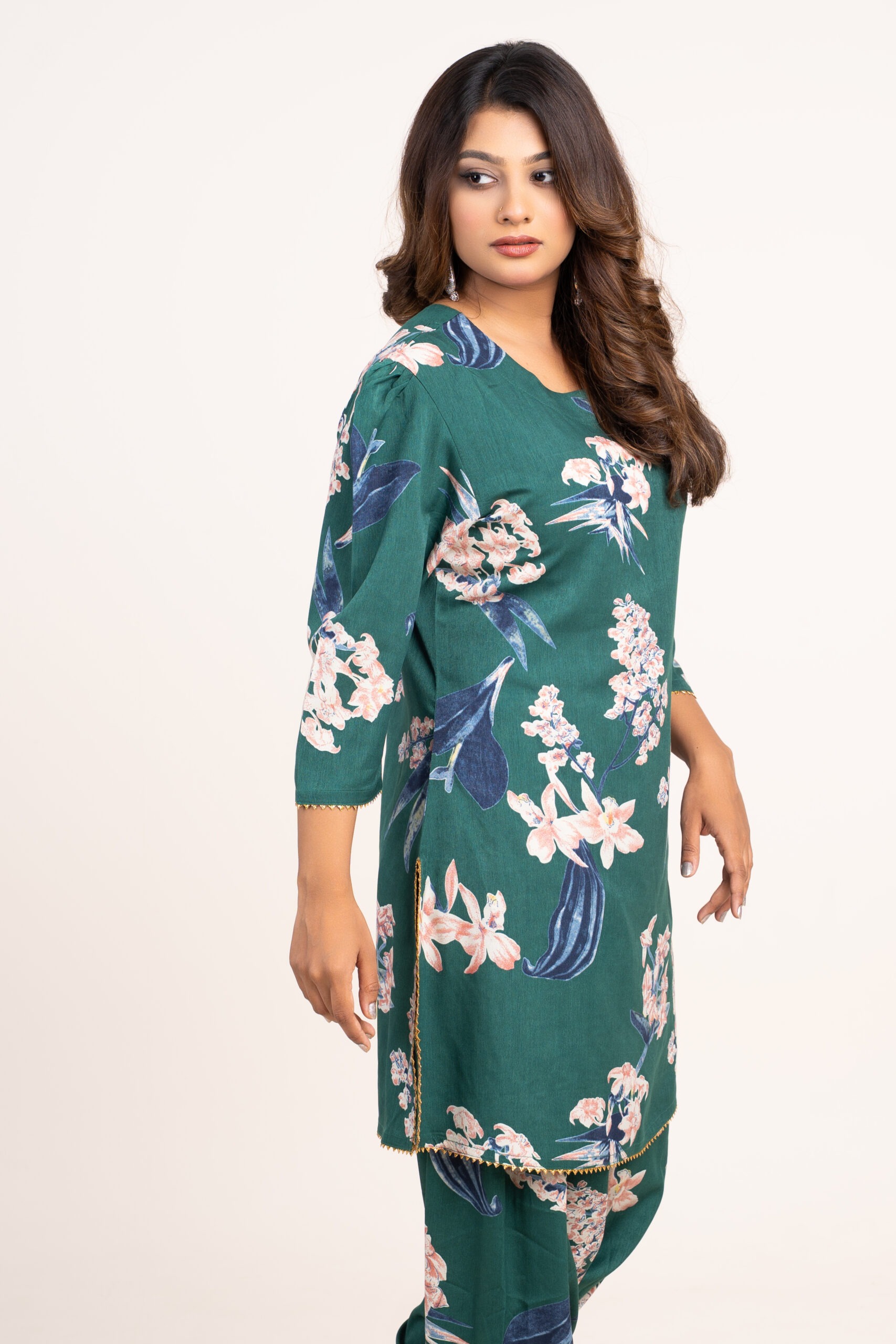 This elegant women’s two-piece set is thoughtfully designed to blend comfort, style and versatility for everyday fashion needs. Featuring a beautifully printed kurti paired with matching pants, this outfit delivers a refined yet relaxed look that works effortlessly across casual, office and semi-festive occasions.