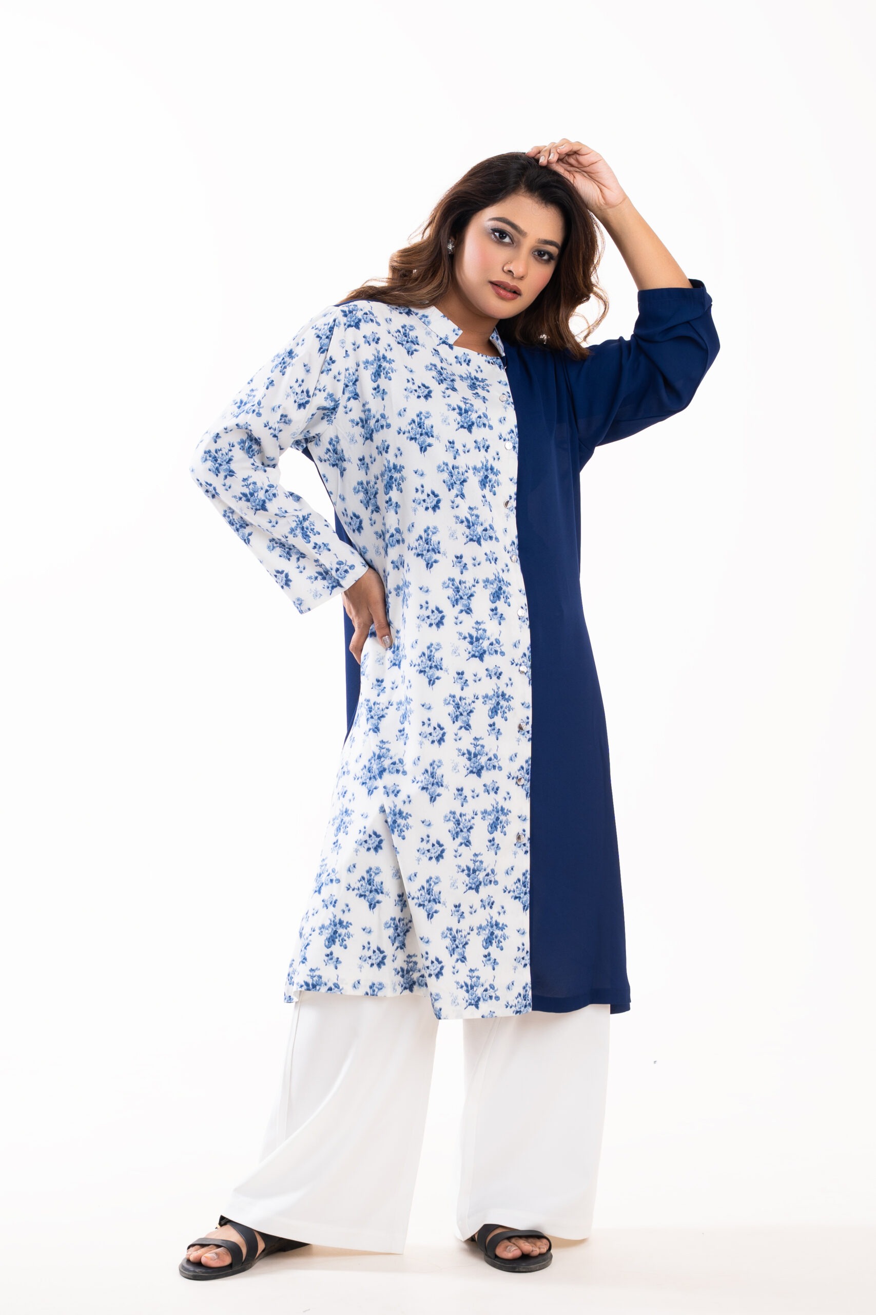 The shirt-style collar neckline adds structure and polish, making this kurti easy to dress up or down. The calf-length cut pairs naturally with sneakers, sandals or flats, making it ideal for casual outings, creative workplaces or travel days.
