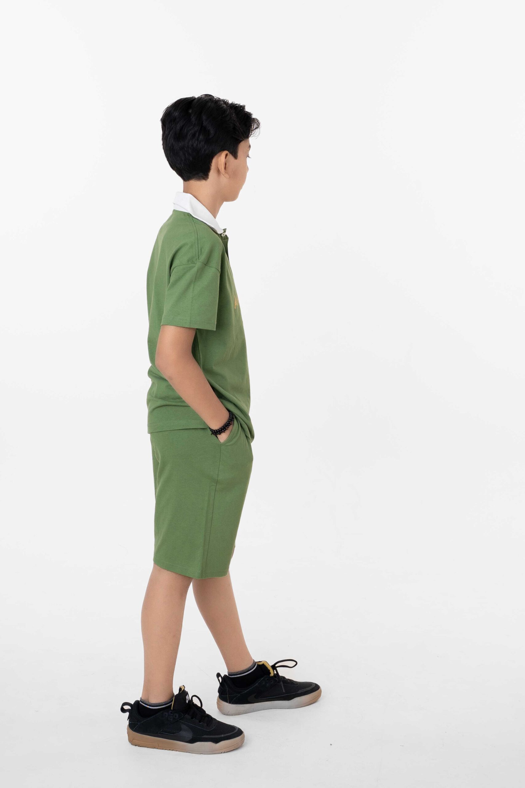 Boys Adventure Polo T-Shirt and Shorts Set Kids Summer Two Piece Outfit for Casual Daily Wear