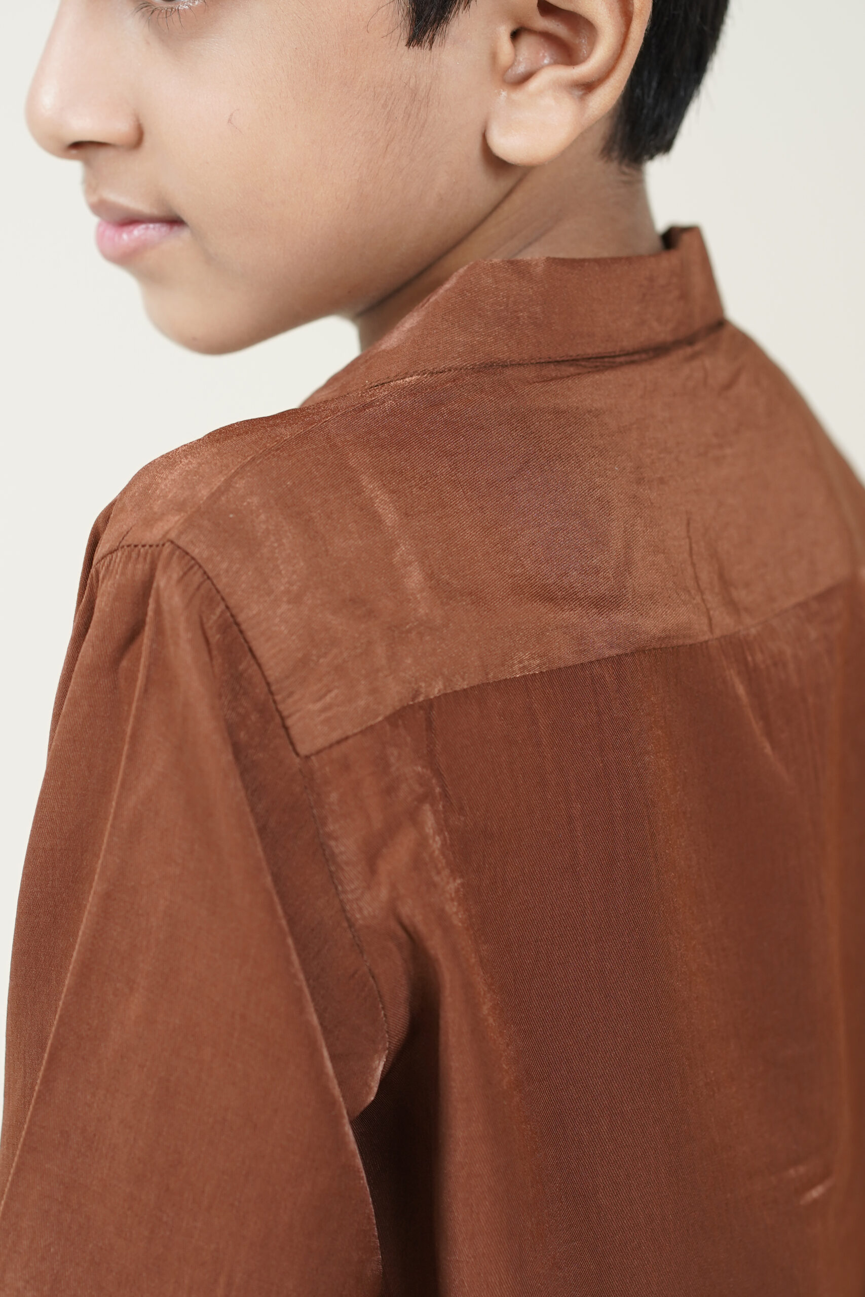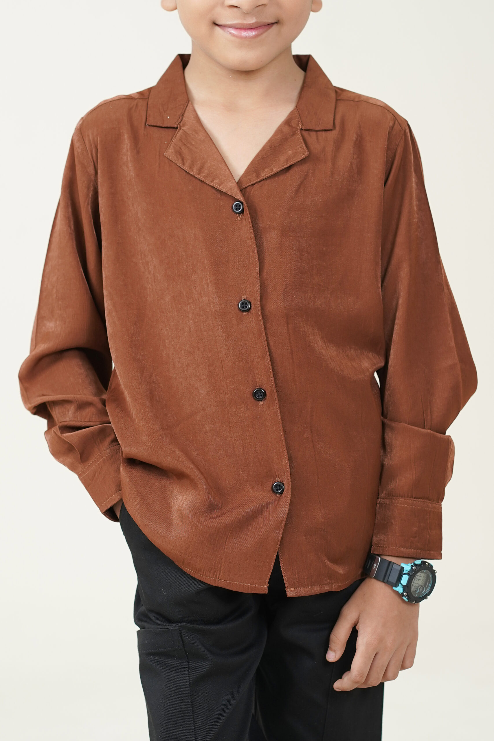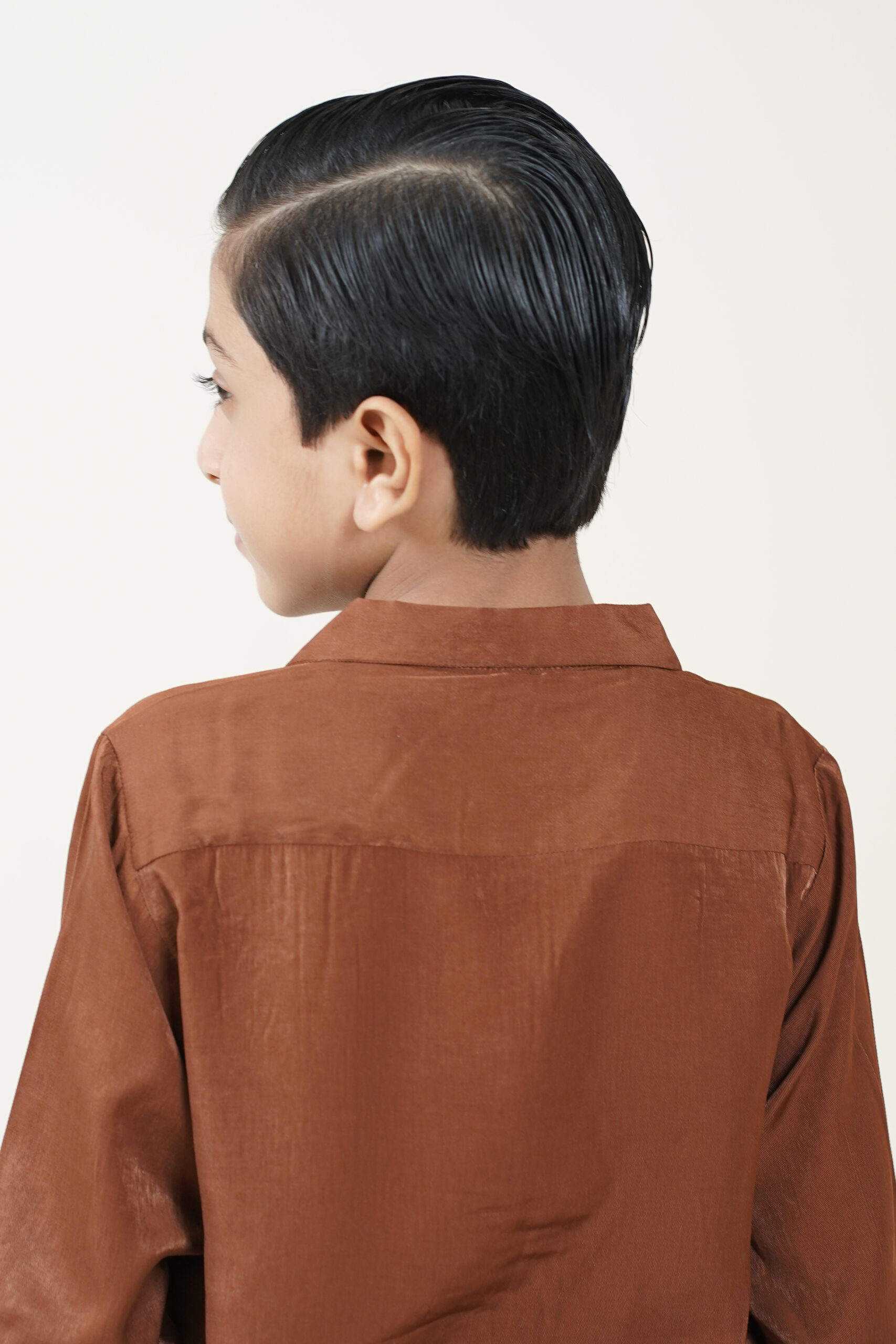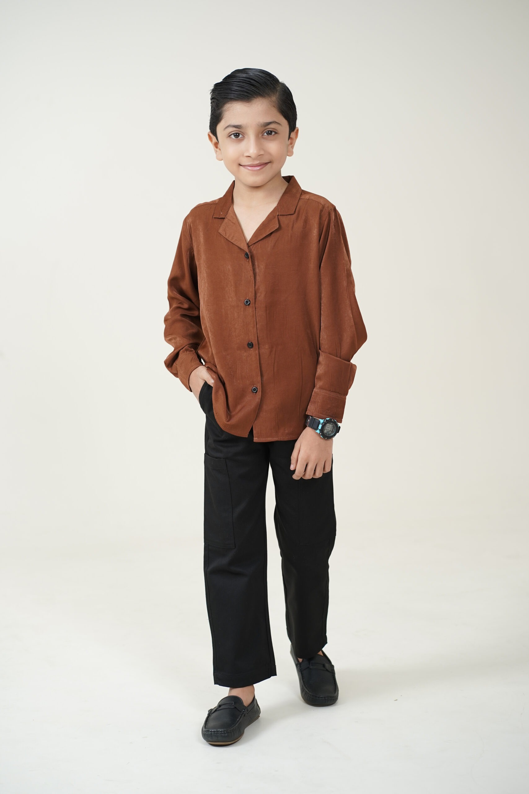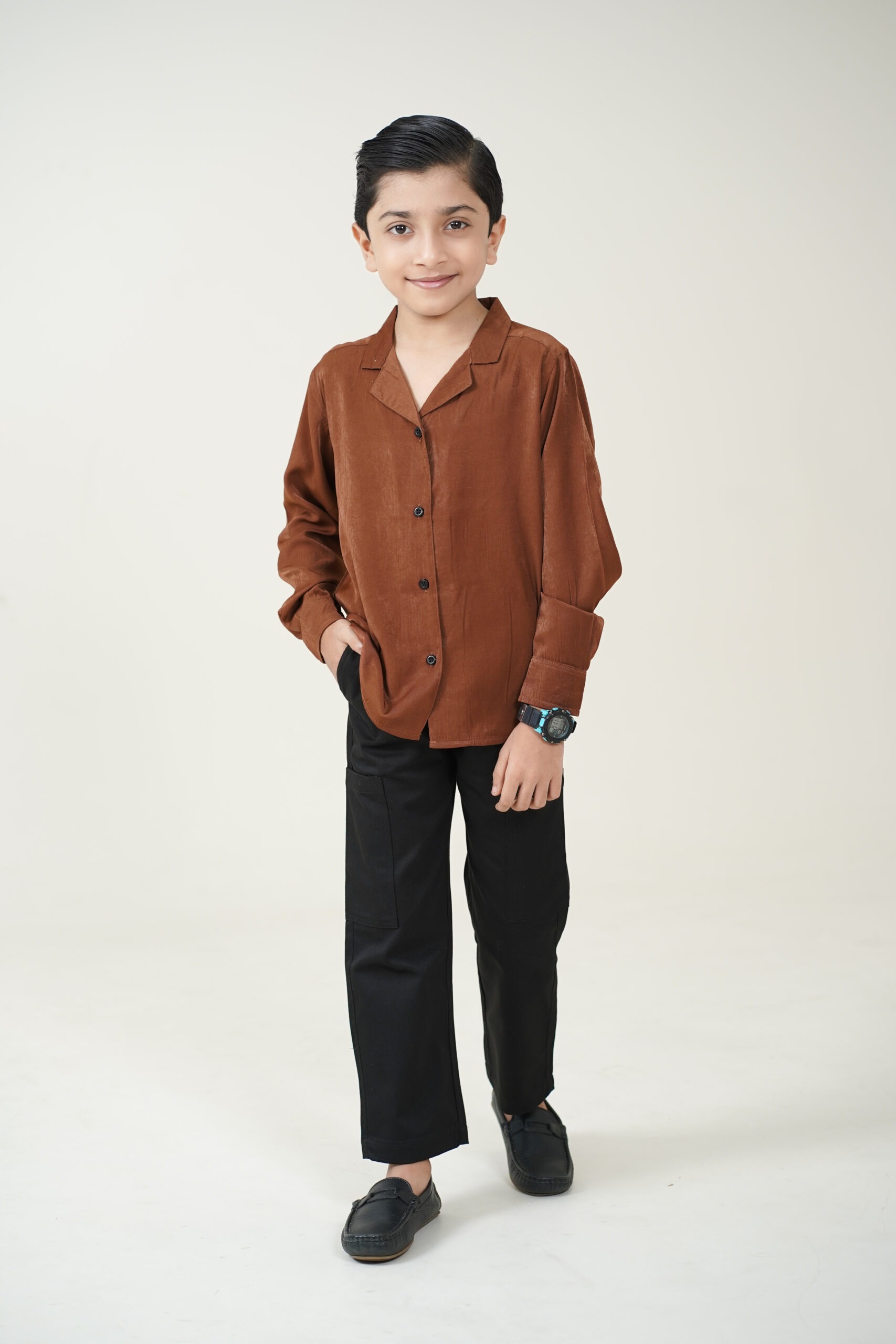 Smart Casual Kids’ Fashion Boys’ Coffee Brown Button Down Shirt for Modern Boys’ Outfit