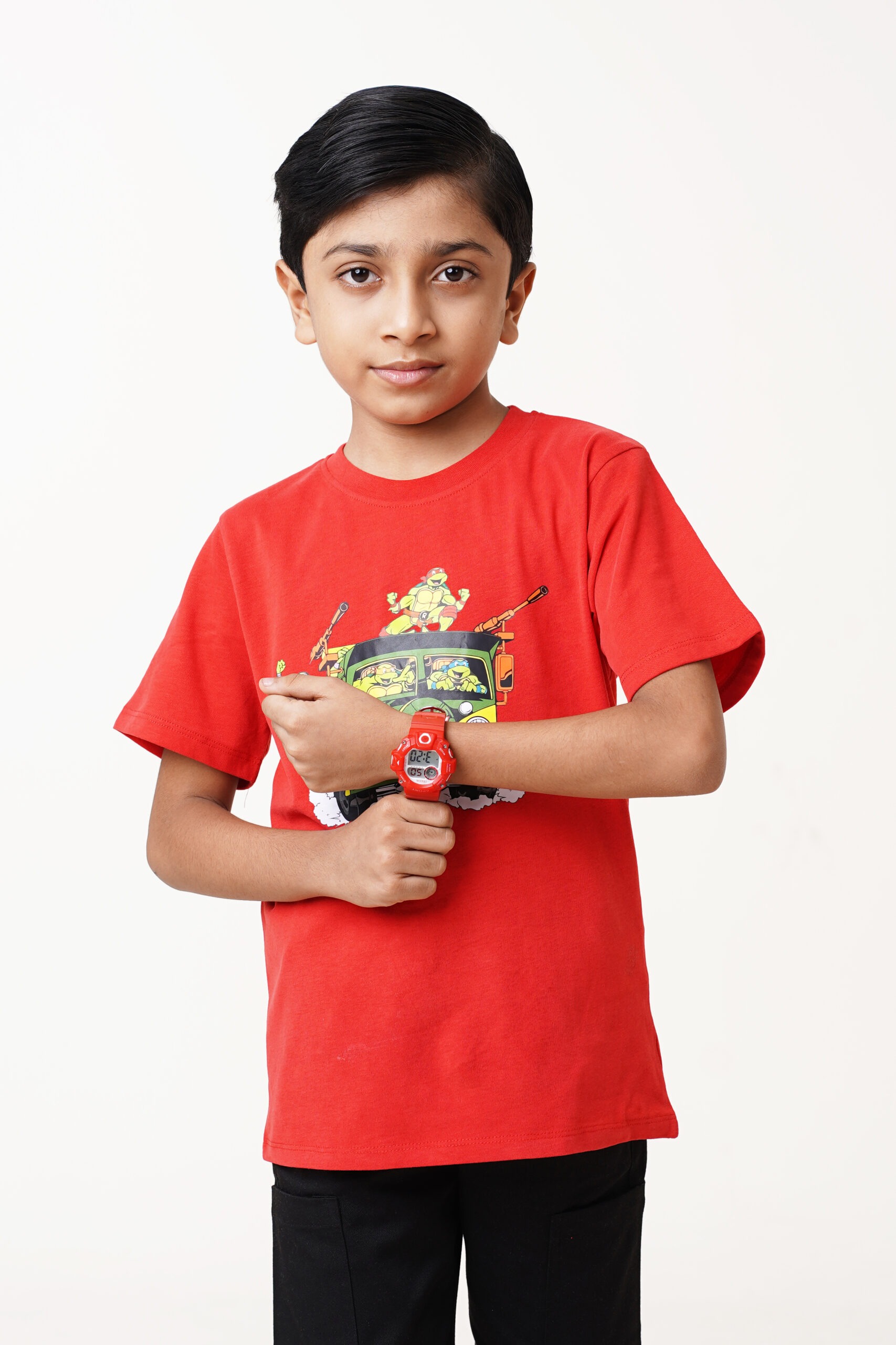 Boys Ninja Turtles Graphic T-Shirt Kids Wear Red Cartoon Soft Cotton Printed Tee