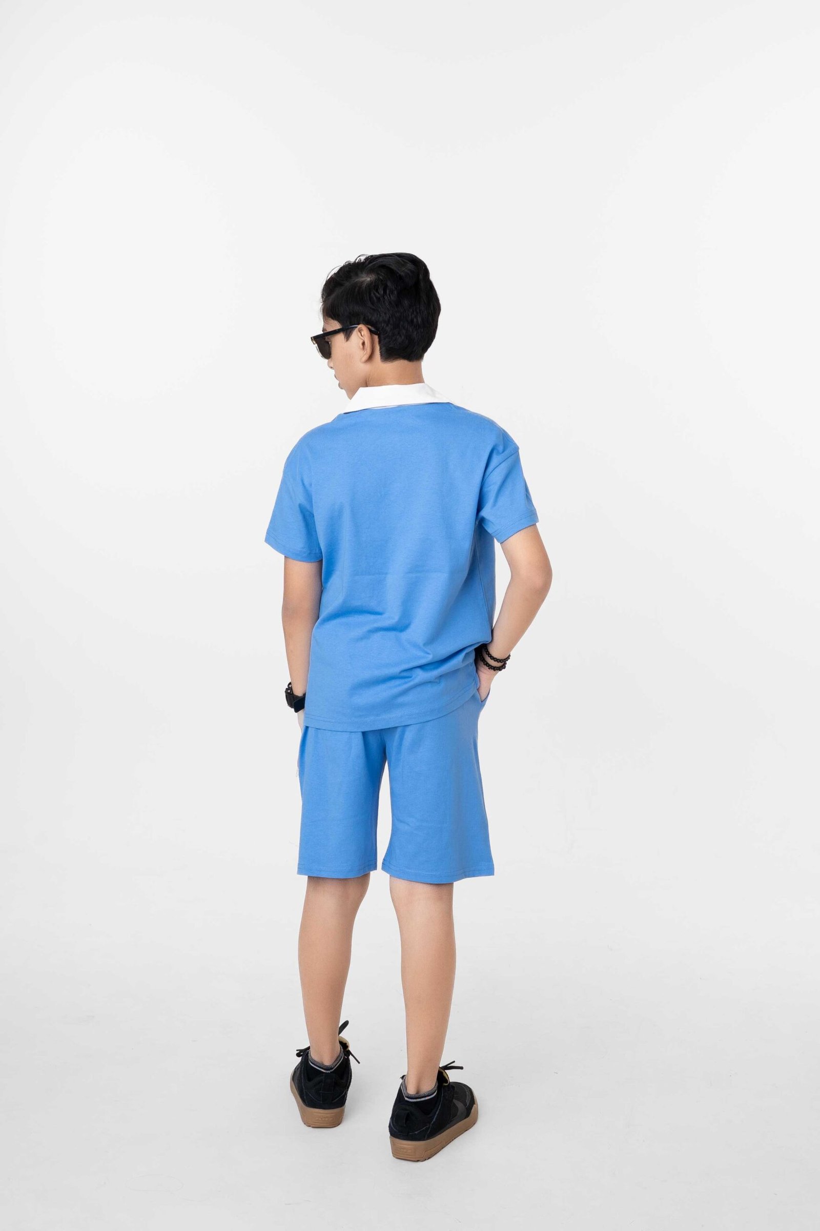 The Kids Adventure Polo Set is designed to keep your child comfortable, active, and stylish throughout the day. Made from premium breathable cotton knit, this outfit ensures maximum softness on the skin while offering durability for everyday wear. The sky-blue polo shirt features a crisp white collar that brings a fresh, sporty look, along with a playful “Adventure” print that inspires curiosity and outdoor fun. Its short sleeves and easy button placket make it suitable for warm weather, school outings, playtime, or casual family events.