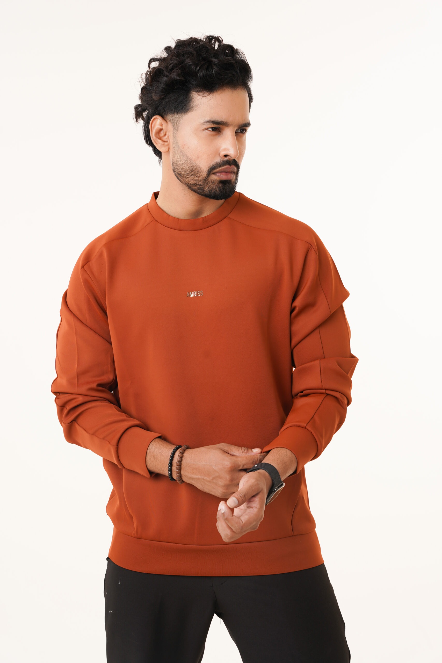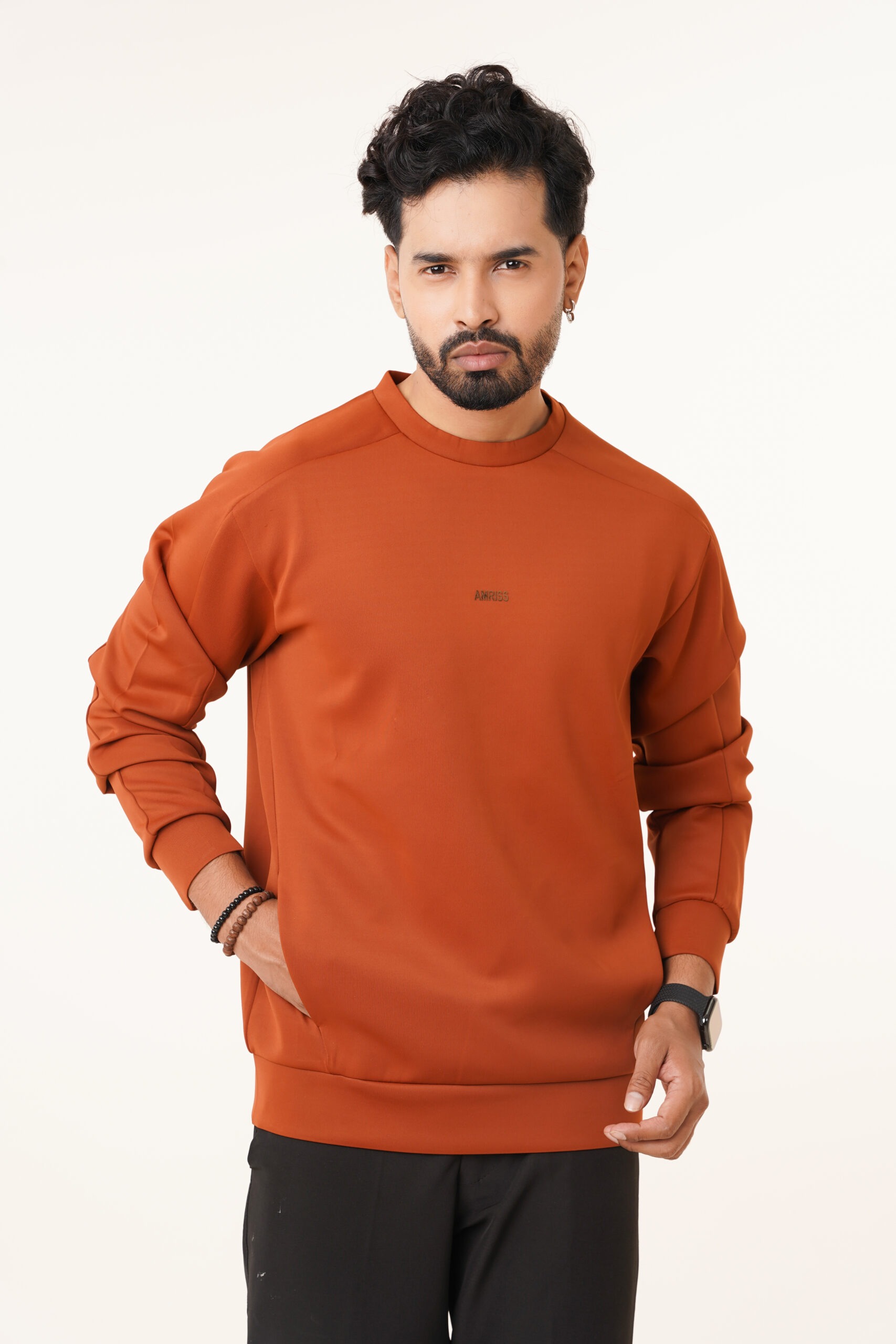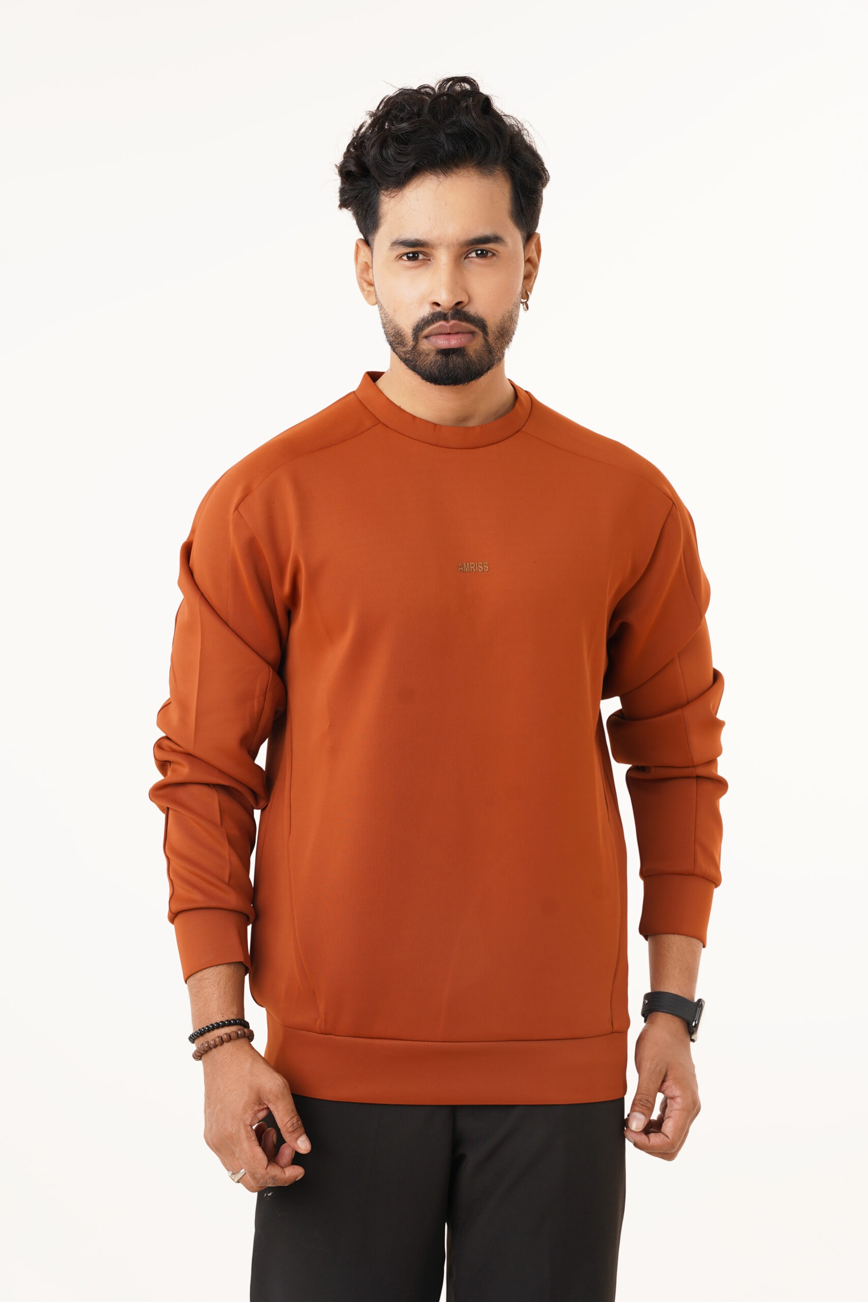Crafted from a high-quality soft knit fabric, it offers a smooth, warm, and breathable feel that keeps you cozy without adding bulk. The rich rust brown color adds a bold yet sophisticated touch, making this sweatshirt stand out in any outfit combination. Its ribbed cuffs, structured shoulders, and clean crew neck design ensure a perfect balance of fit, durability, and style.