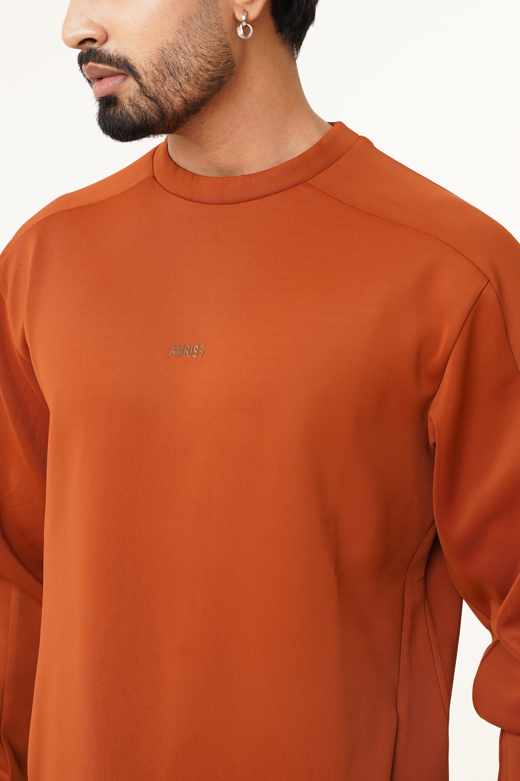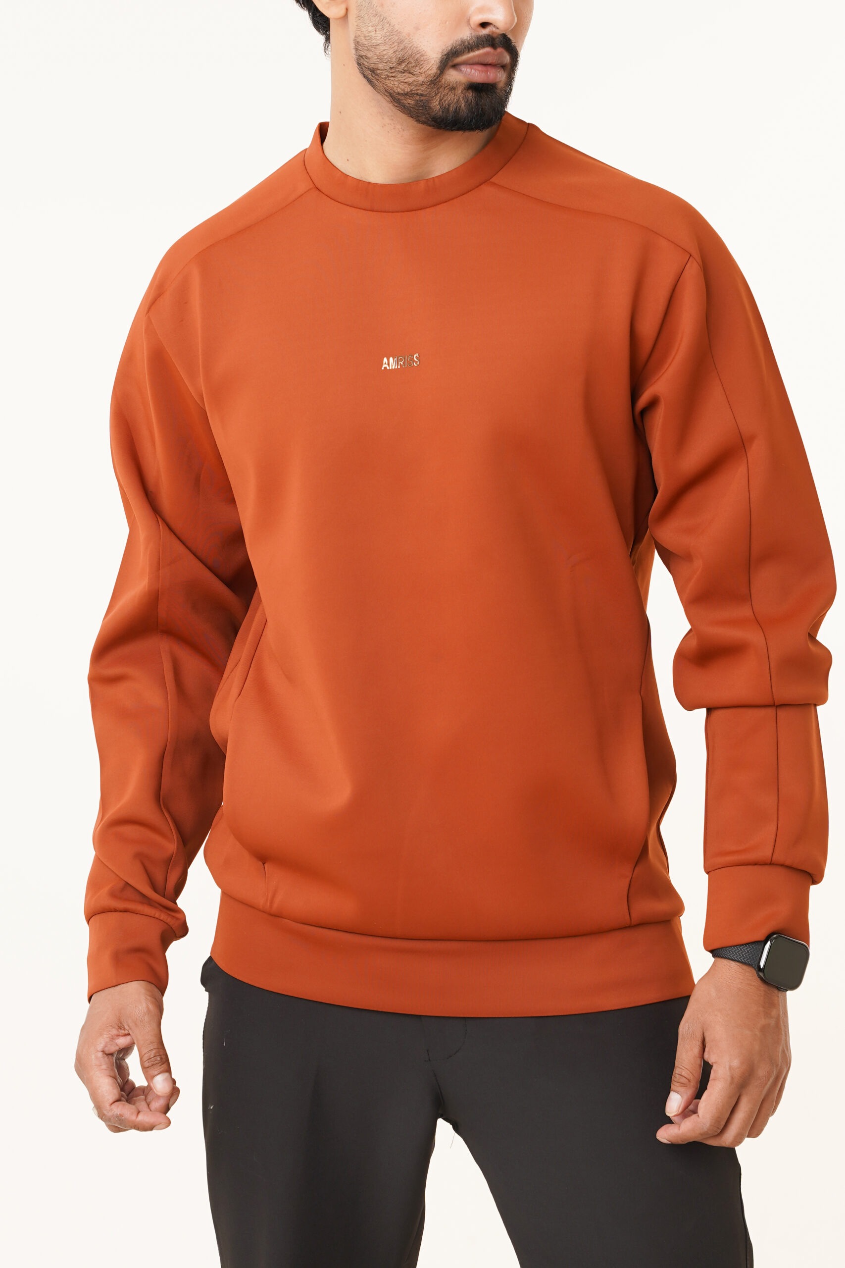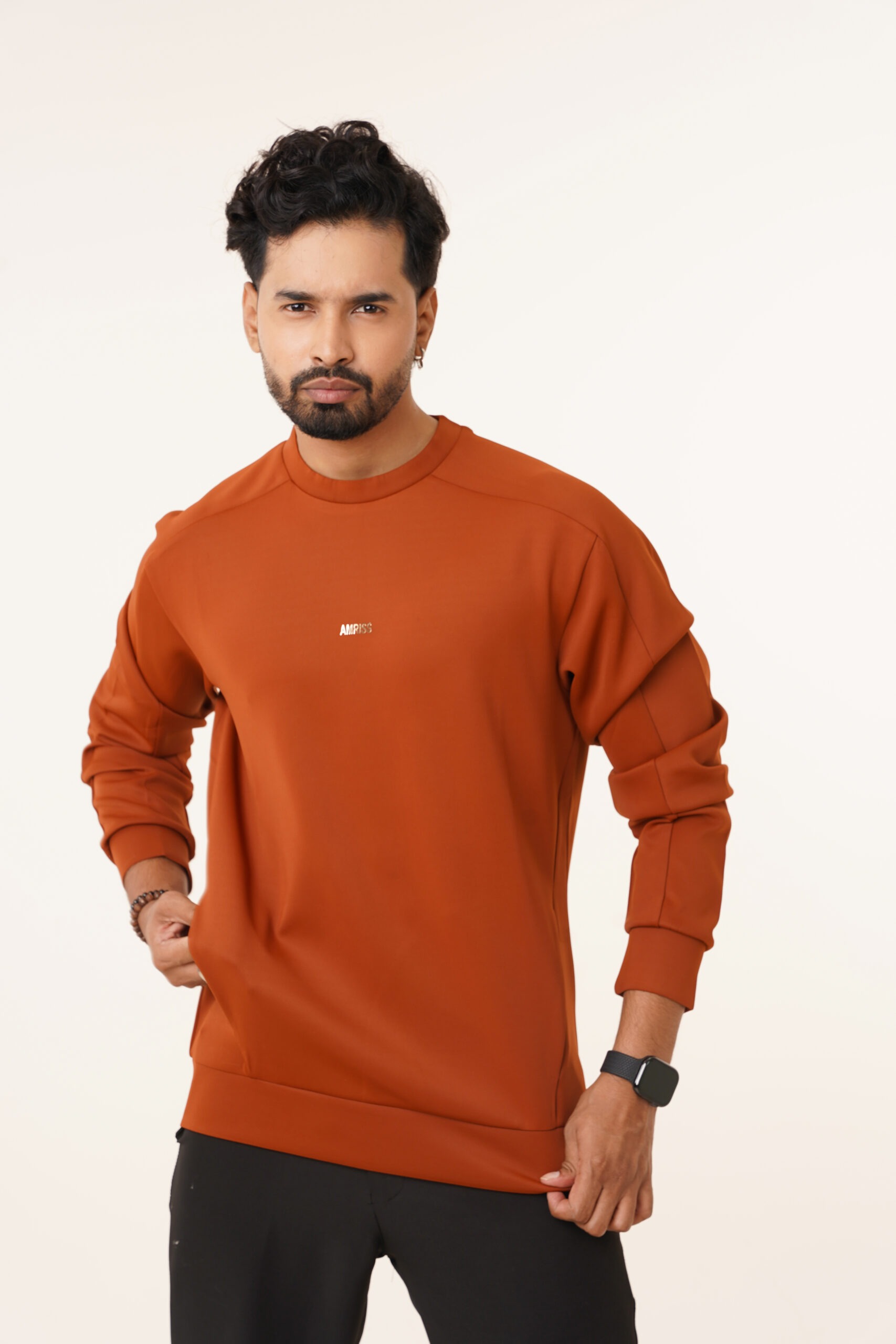 Crafted from a high-quality soft knit fabric, it offers a smooth, warm, and breathable feel that keeps you cozy without adding bulk. The rich rust brown color adds a bold yet sophisticated touch, making this sweatshirt stand out in any outfit combination. Its ribbed cuffs, structured shoulders, and clean crew neck design ensure a perfect balance of fit, durability, and style.