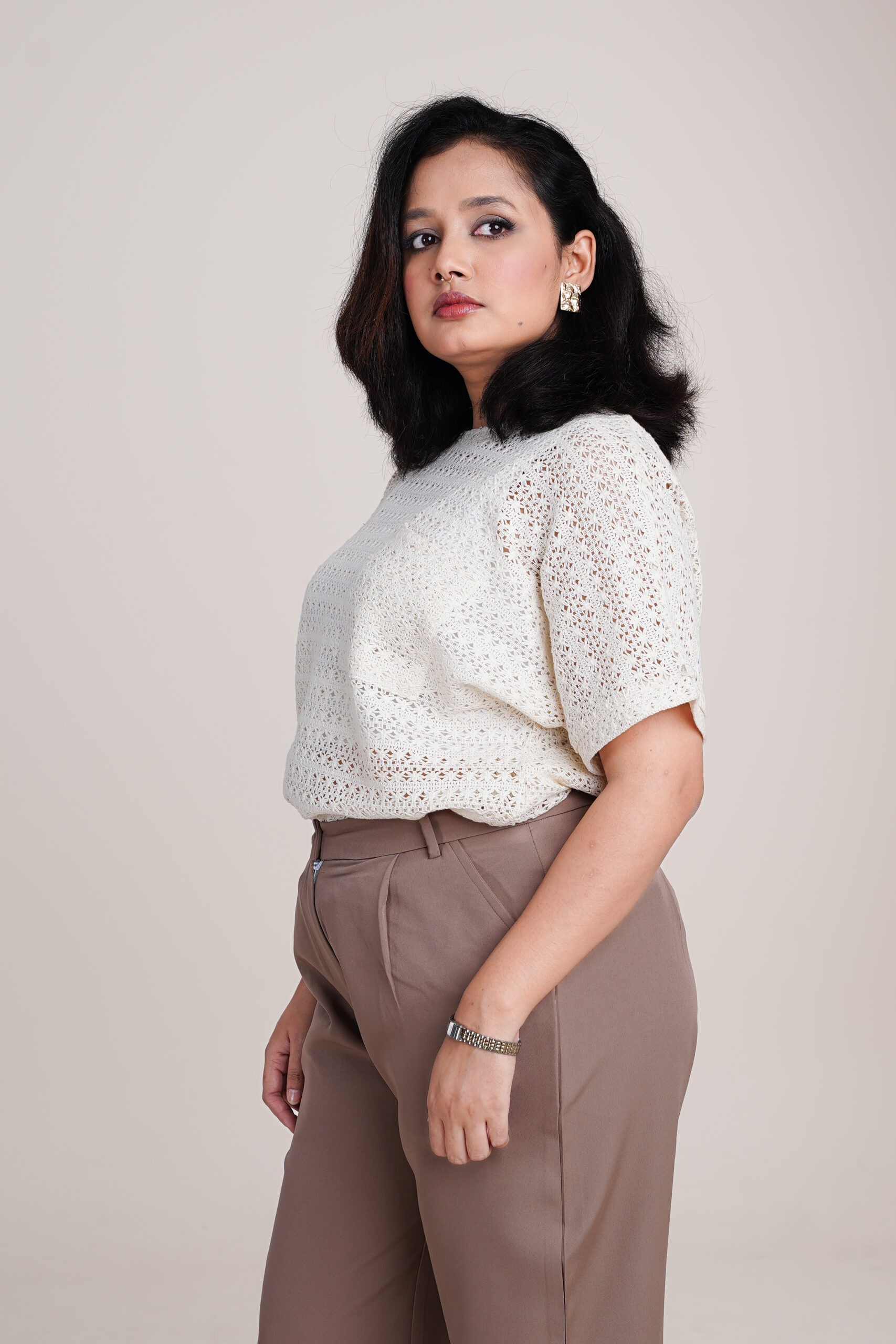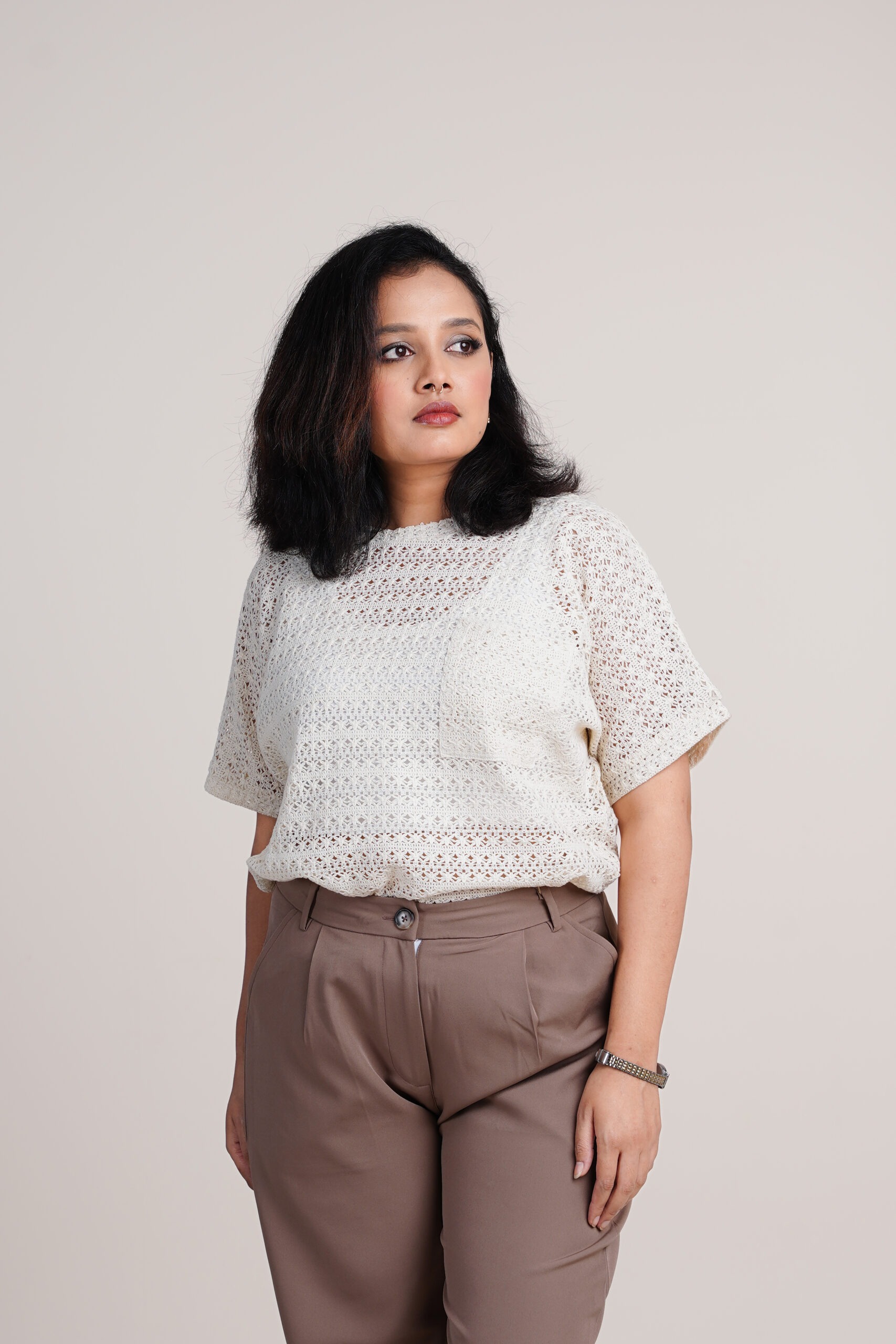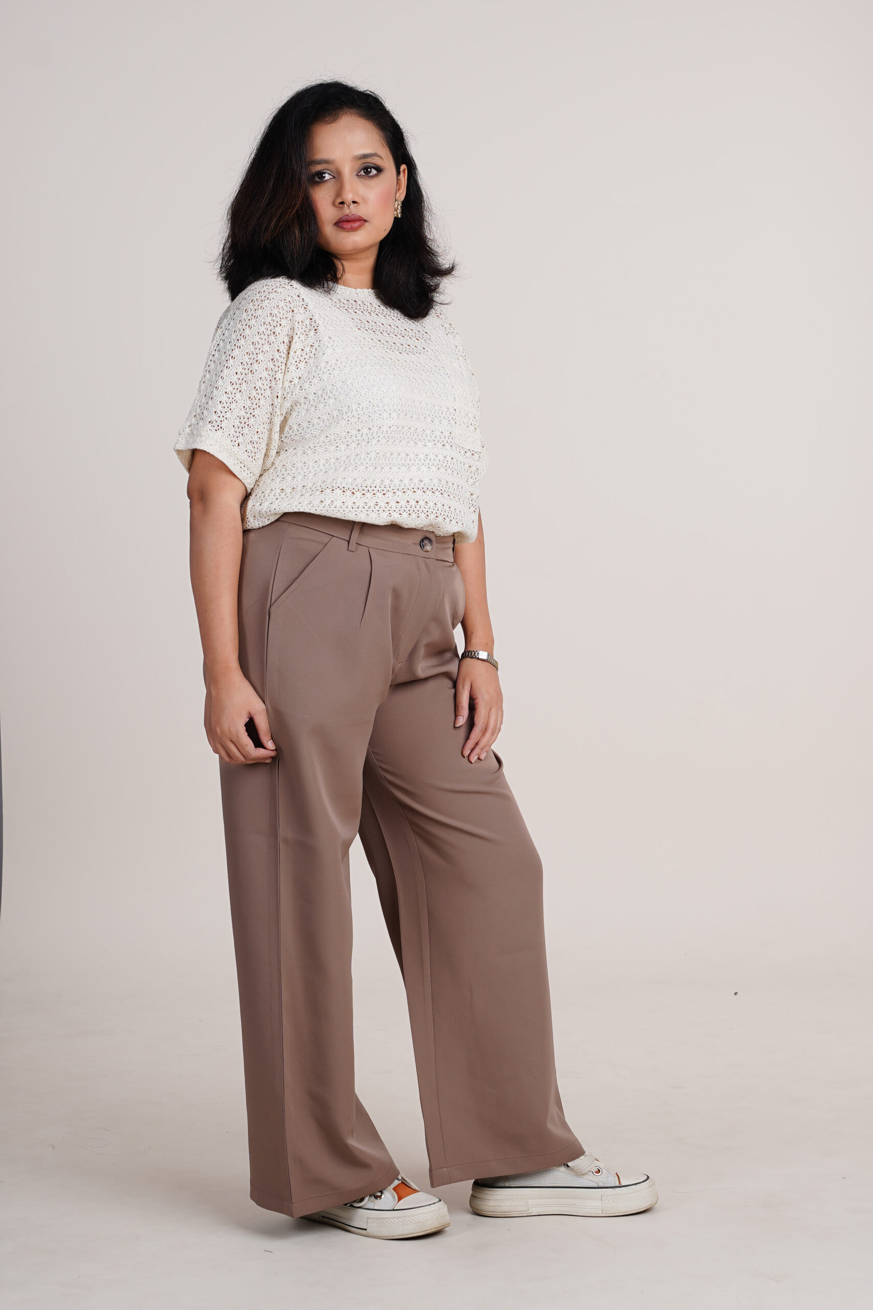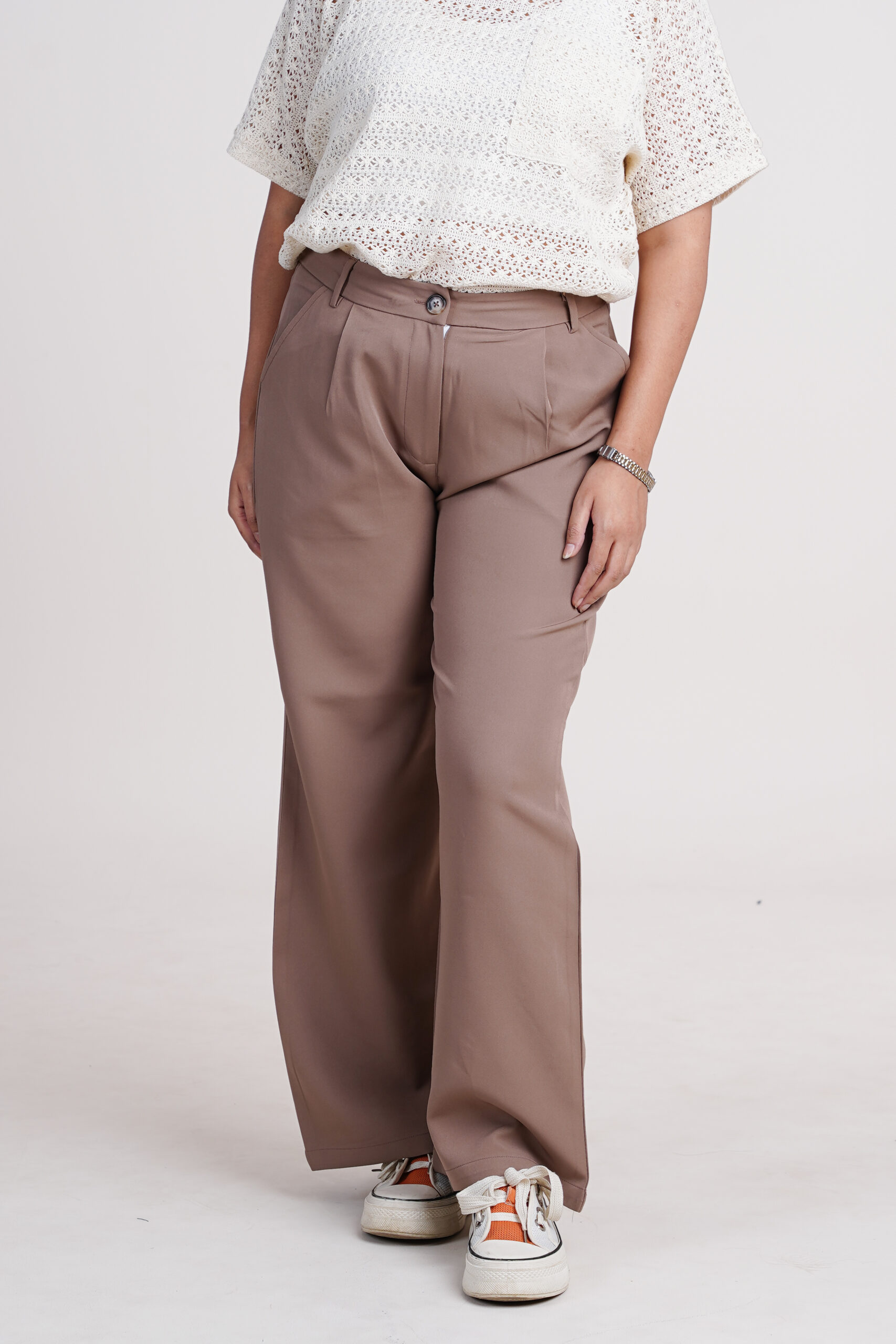 - Color: Off-white and Mocha Brown Pants