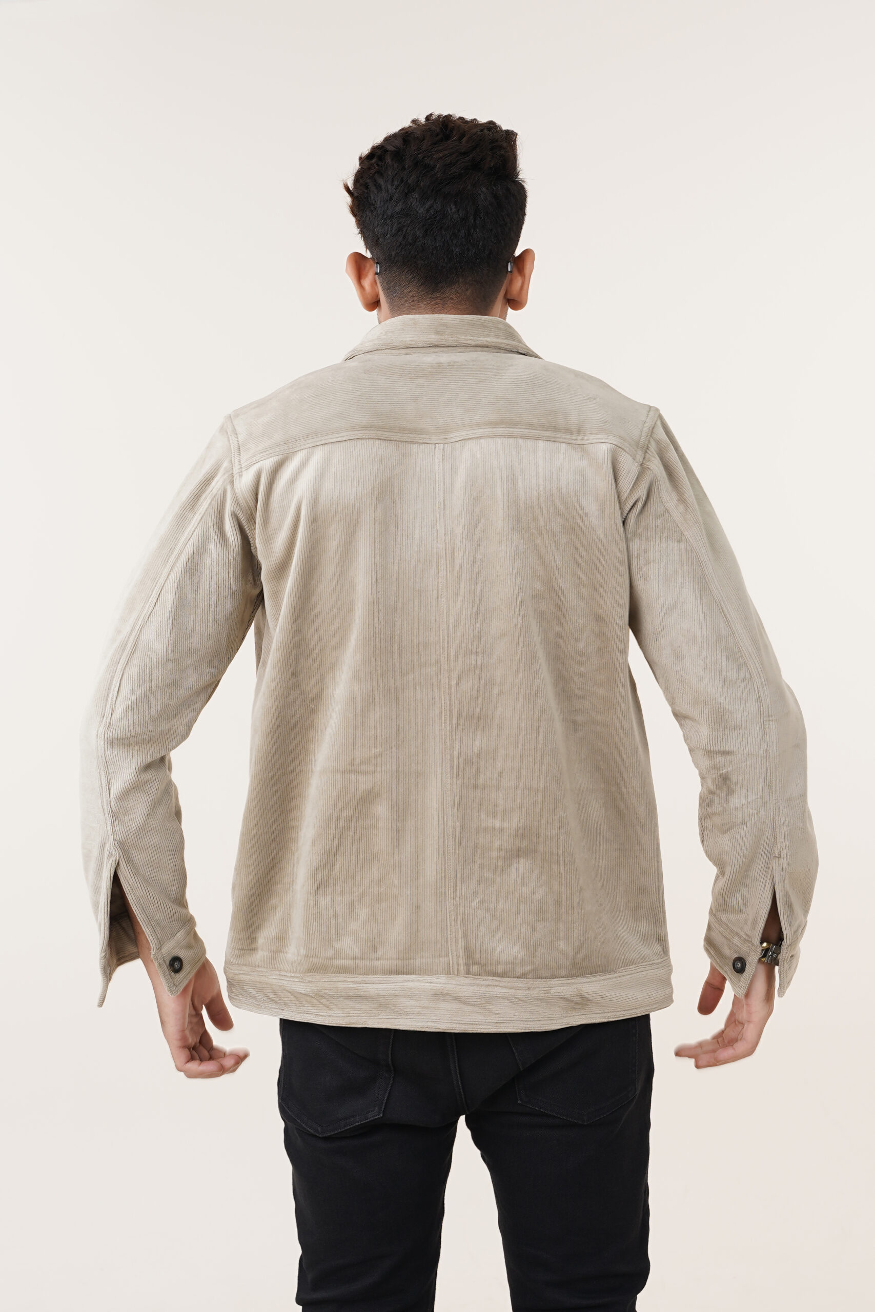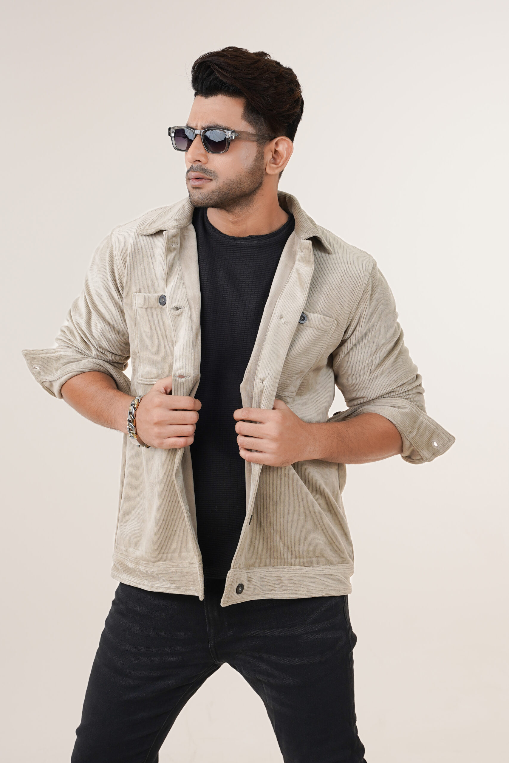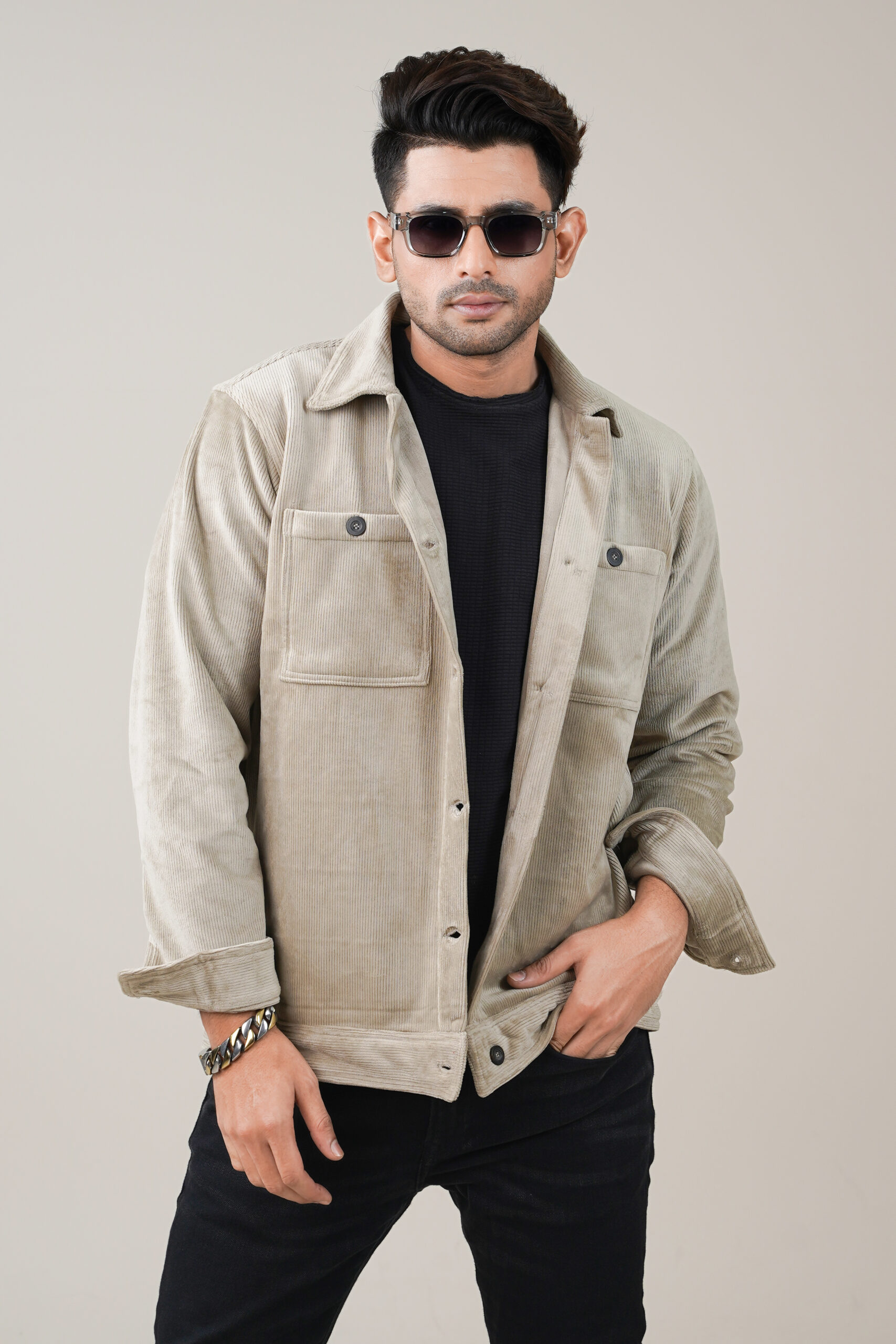 Soft Beige Textured Shacket Men’s Premium Corduroy Overshirt Winter Outwear Jacket