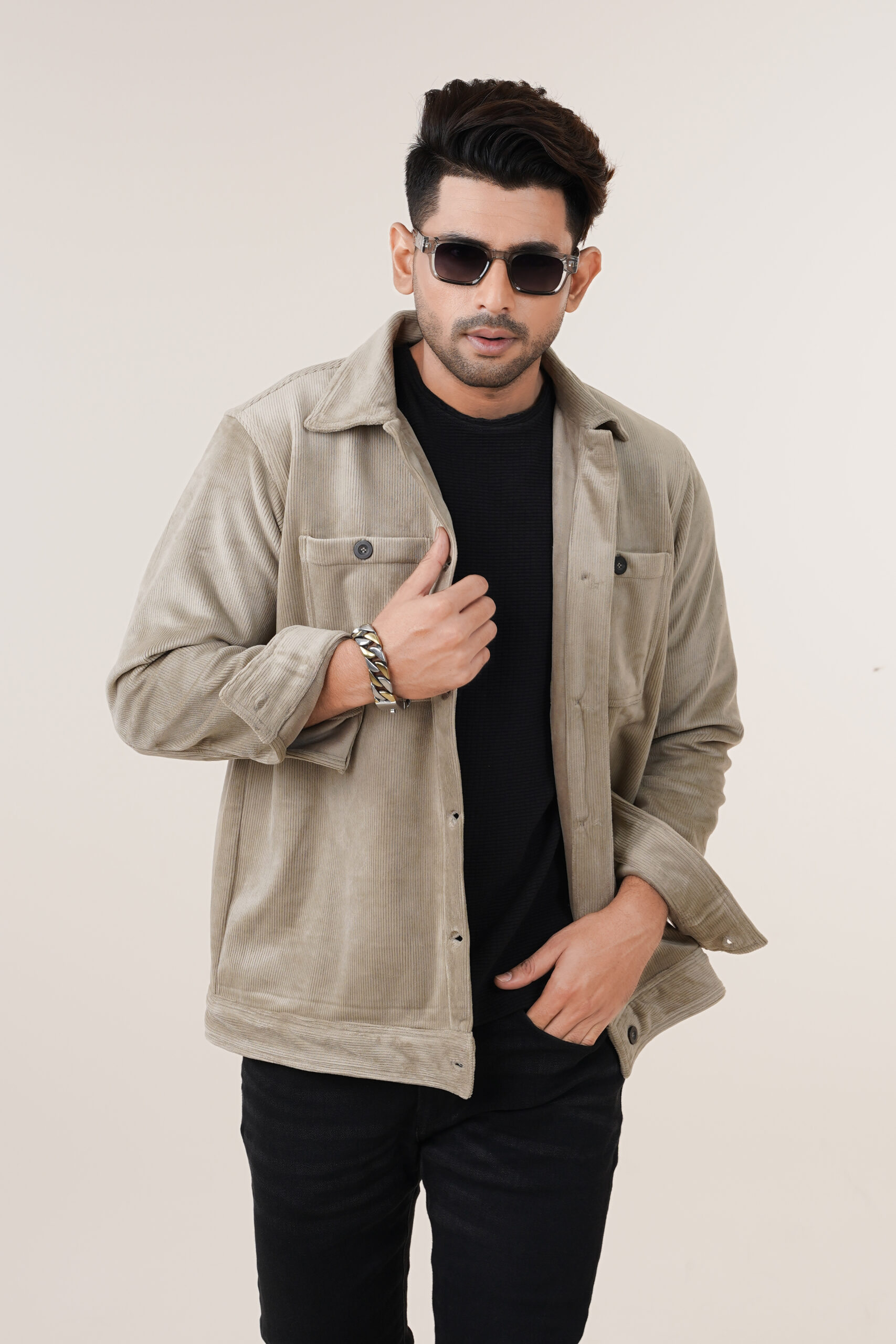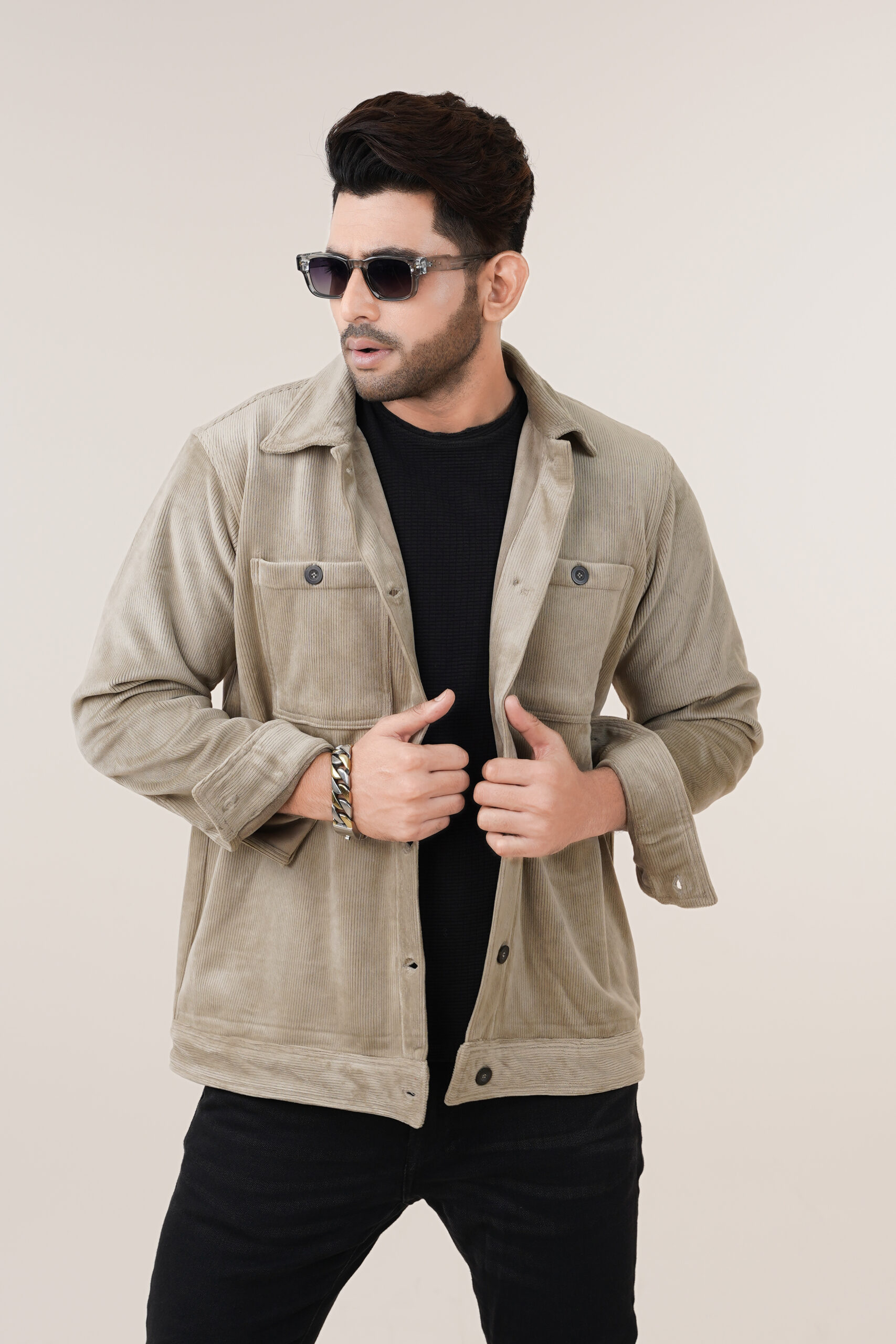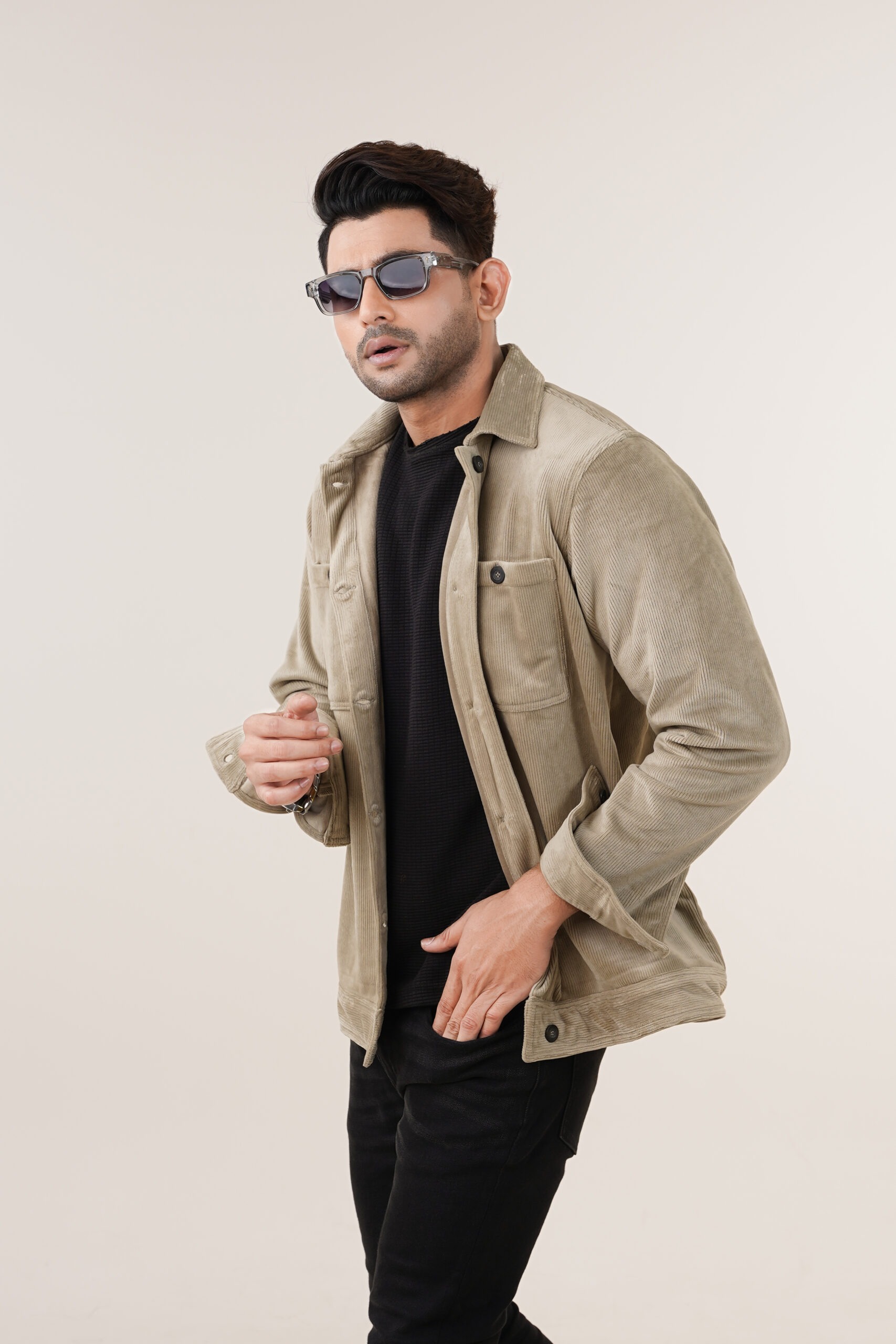 Soft Beige Textured Shacket Men’s Premium Corduroy Overshirt Winter Outwear Jacket