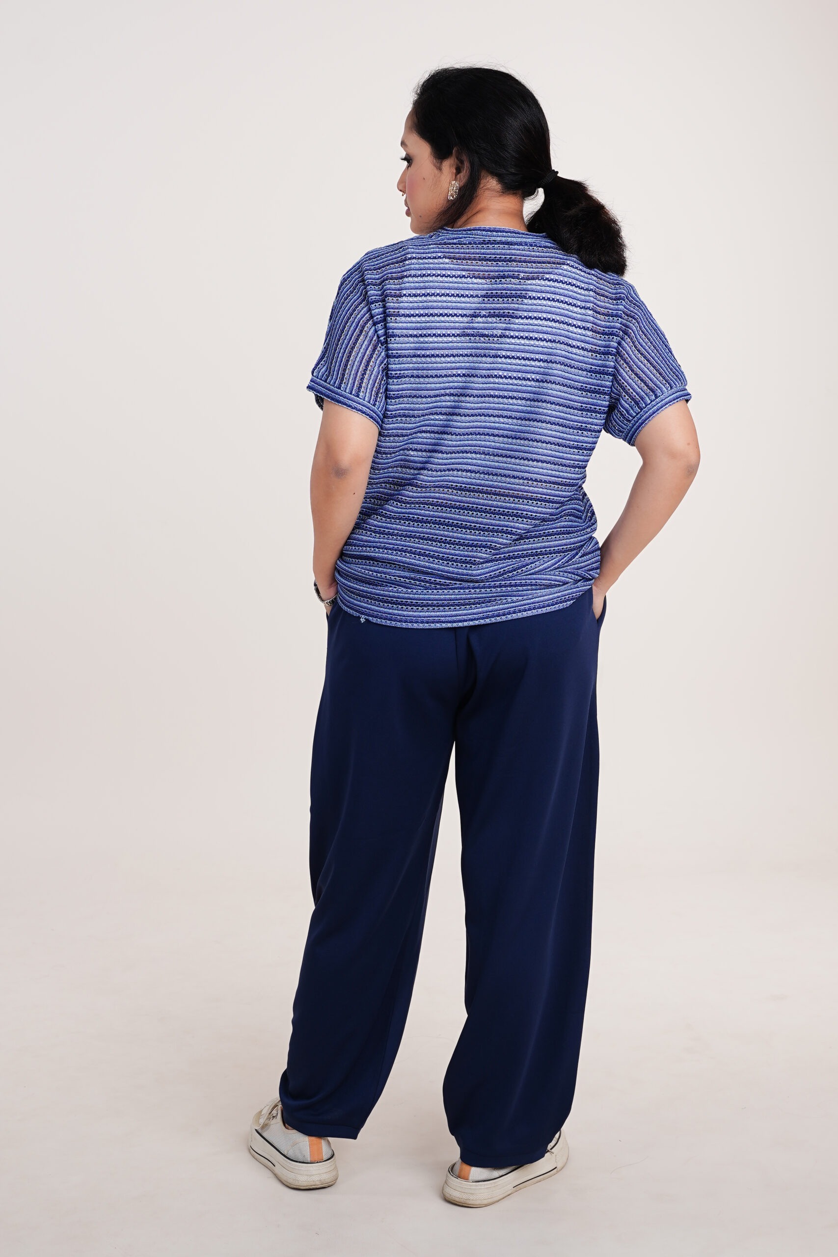 The top is thoughtfully tailored with a clean neckline and soft structure that drapes naturally on the body. Its breathable fabric ensures all-day comfort, making it suitable for warm climates as well as layered styling in cooler seasons. The matching pants feature a comfortable waist design and a flowy cut that enhances movement while maintaining a polished appearance.