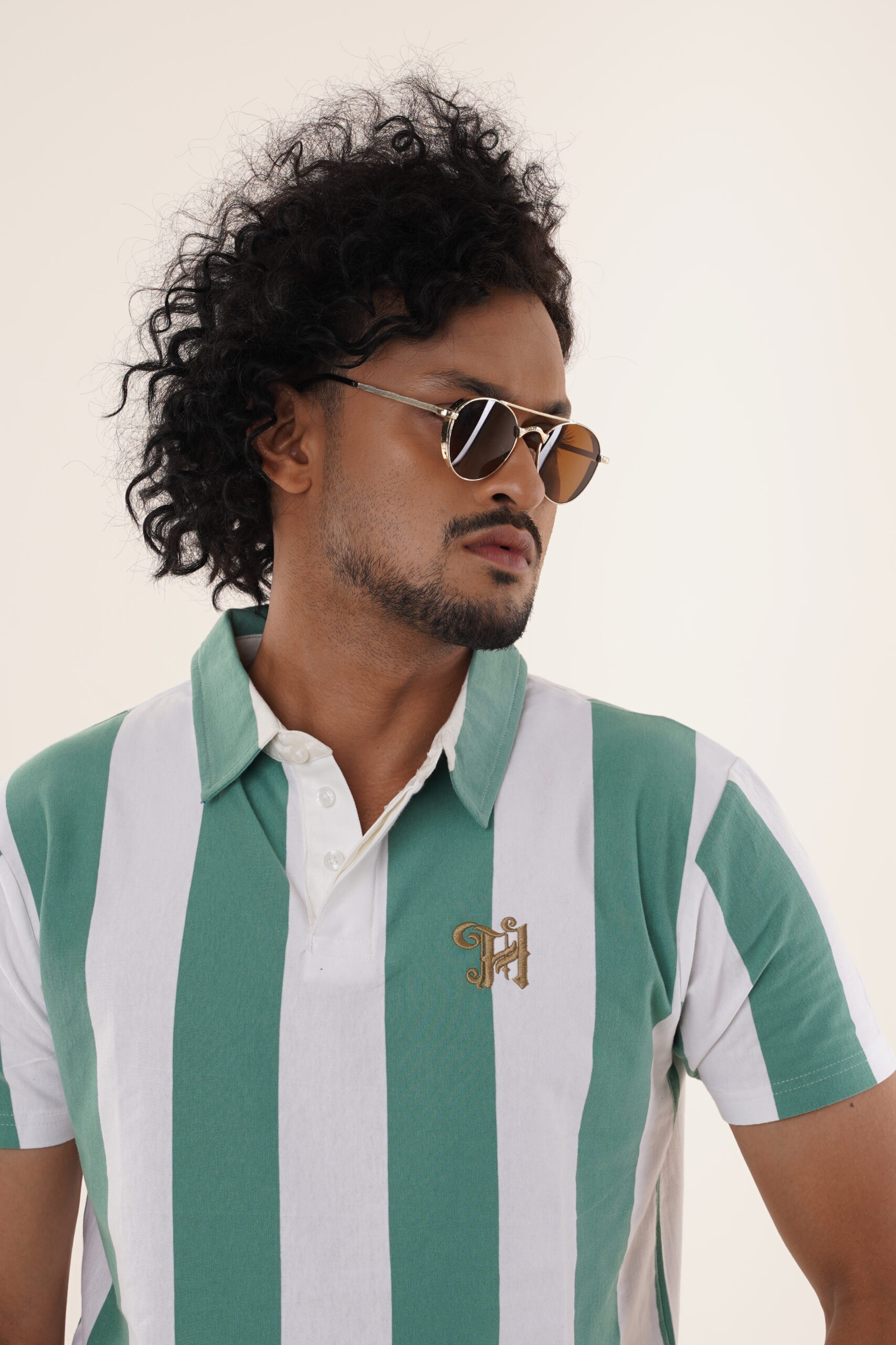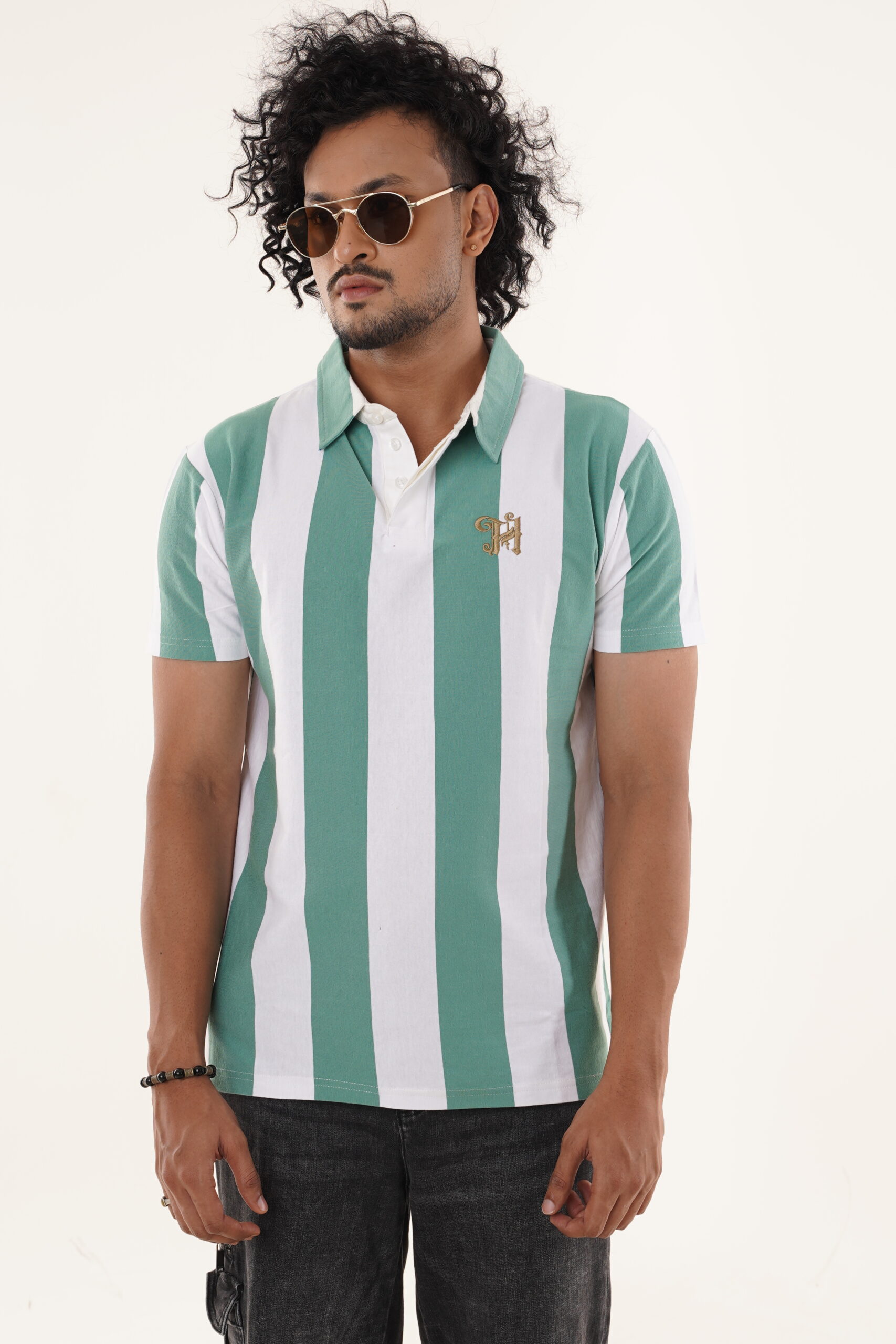 Make a fresh style statement with this green and white striped polo shirt, designed for comfort and effortless sophistication. Crafted from premium 100% cotton pique fabric, it offers a soft, breathable feel that keeps you cool and confident all day long.