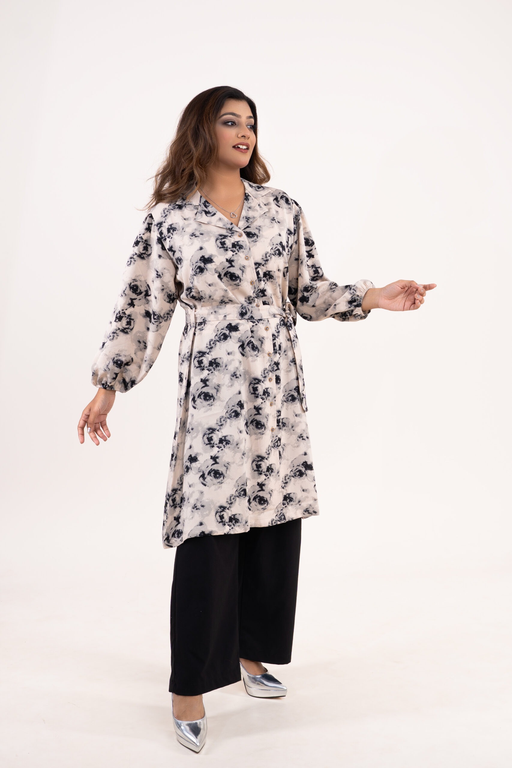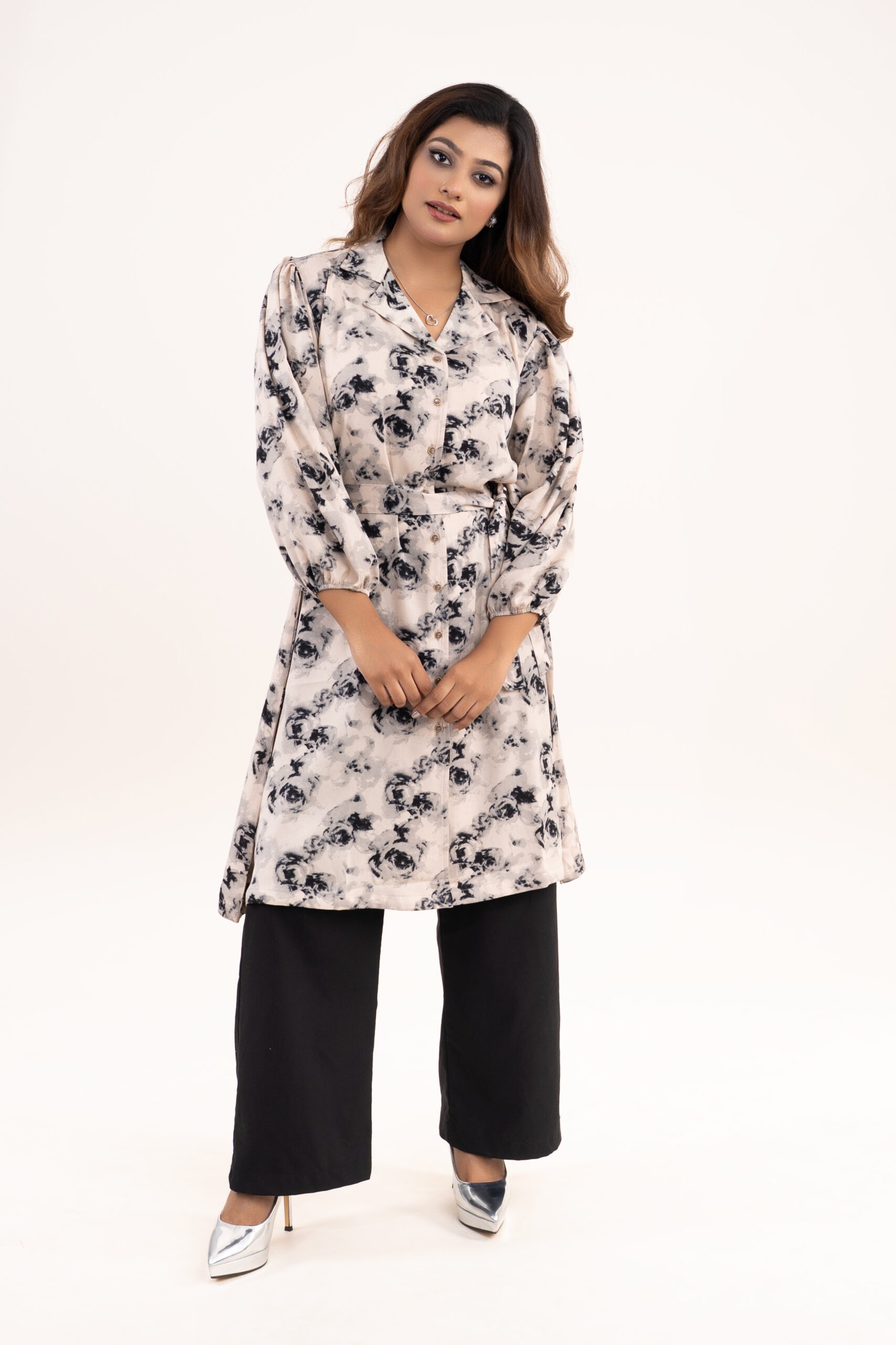 The kurti features a refined long silhouette that flatters all body types while providing effortless movement and ease. Its elegant printed design adds a sophisticated charm, allowing you to transition seamlessly from office hours to after-hours gatherings. The thoughtfully tailored fit strikes a perfect balance between structure and comfort, offering a polished look without feeling restrictive.