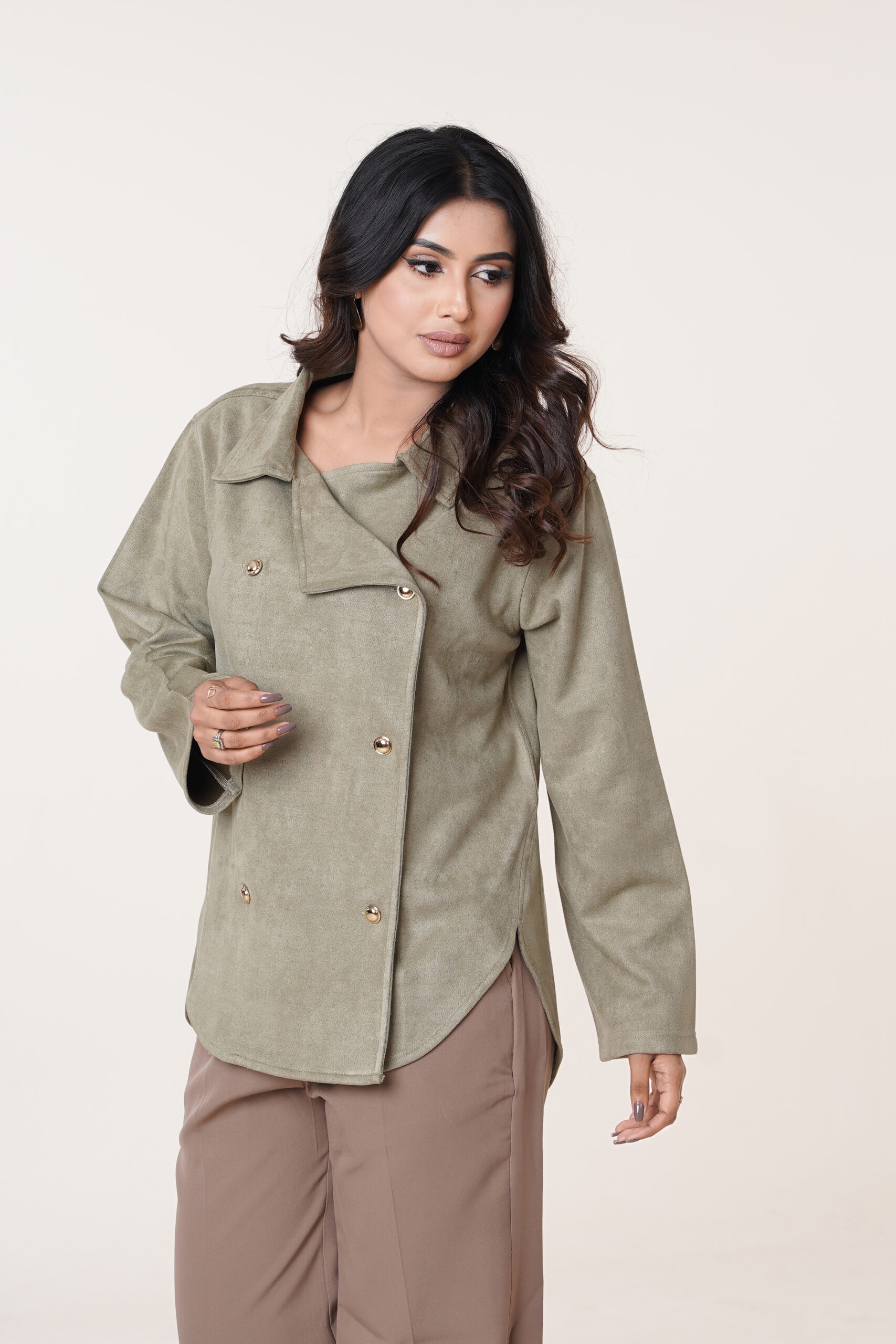 Stay warm, stylish and effortlessly polished with this women’s premium overcoat designed for both casual outings and formal moments. The soft, textured fabric gives you a cozy feel while maintaining a refined look suitable for the season. Its double-breasted silhouette enhances structure, adds elegance and makes layering easy without feeling bulky.